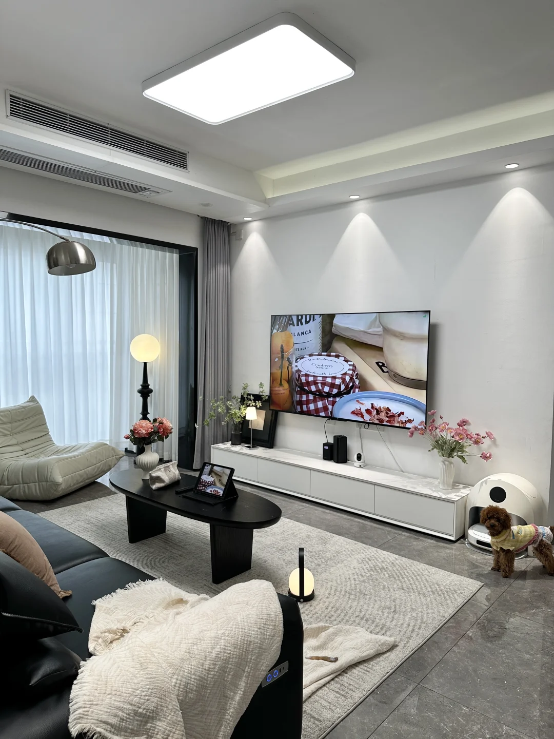 ✅客厅不做复杂的背景墙,简简单单大白墙更百搭,开间3.6米,沙发背景墙3.2米,沙发2.8米,📺70寸
