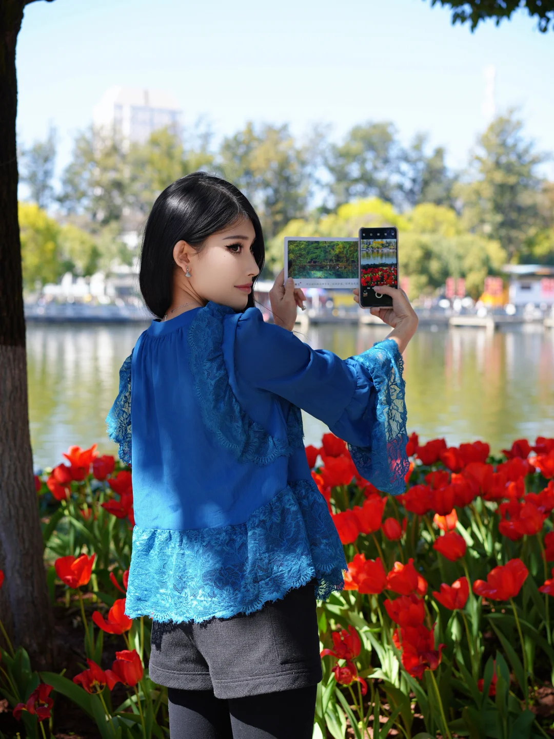 郁金香开得正好,把透卡举起来,对着花、对着湖水、对着古巷…