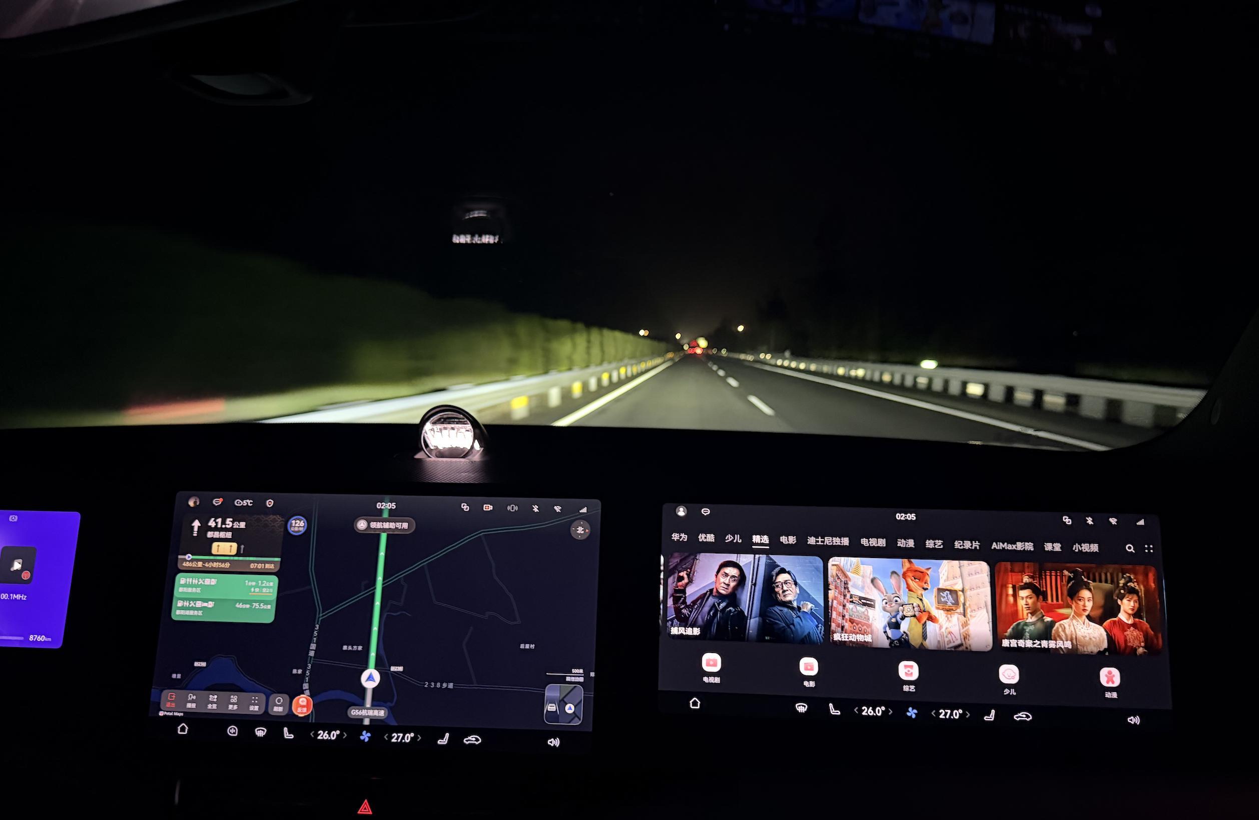 高速上肯定是全程辅助驾驶了,长距离开车它还是能够很好减轻驾驶的疲劳感,ADS 4.1 在高速上基本不用管它。过程中也有几个场景,比如前车的突然变道它也马上会紧急避让,另外路上也遇到了大雾天气,问界 M9 的环境识别也依旧准确,路上各种状况 ADS 4.1 都能从容应对。同时,春节车多的时候,自动泊车也起到了很大的帮助,各种车位都能轻松泊入。