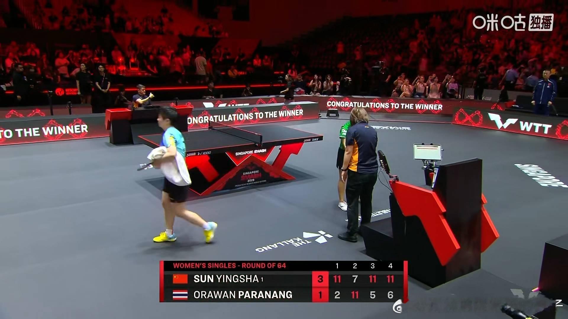 孙颖莎3比1帕拉南(2,-7,5,6)晋级2026WTT新加坡大满贯女单三十二强下一轮:孙颖莎🇨🇳VS萨马拉🇷🇴孙颖莎vs帕拉南