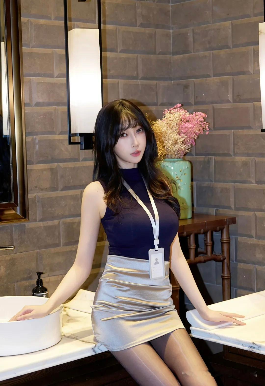 一袭银白流光吊带长裙勾勒惹火身材,妖娆妩媚如同水银泻地般一发不可收拾