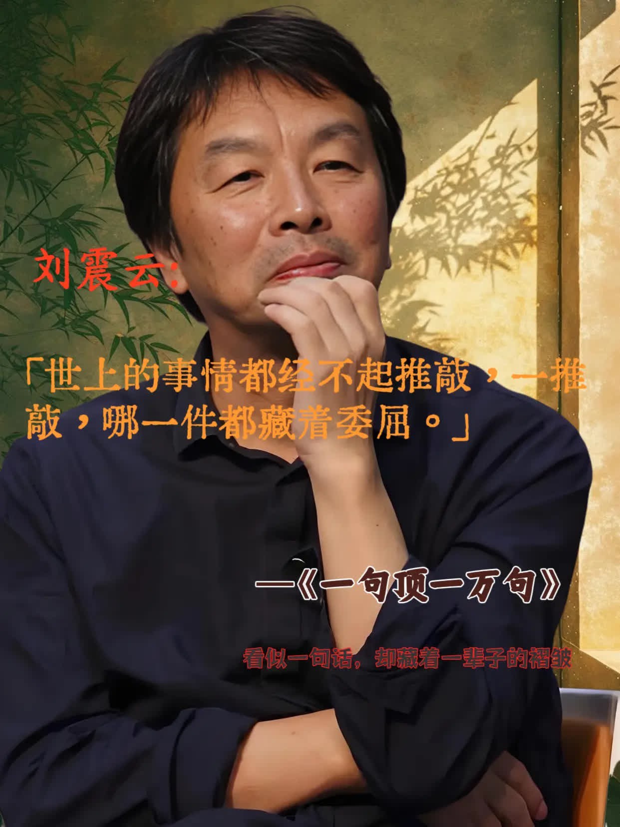 看似一句话,却藏着一辈子的褶皱 刘震云在《一句顶一万句》里写: “世上的事经不起推敲,一推敲,哪件都藏着委屈” 短短几字,把日子里的拧巴、人心底的褶皱全摊开了 就像书中人找“说得着的人”找了百年 一句顶一万句的,哪是话啊 是没说出口的孤独,是藏在褶皱里的人生啊 ,一句顶一万句,,刘震云,,文字的力量