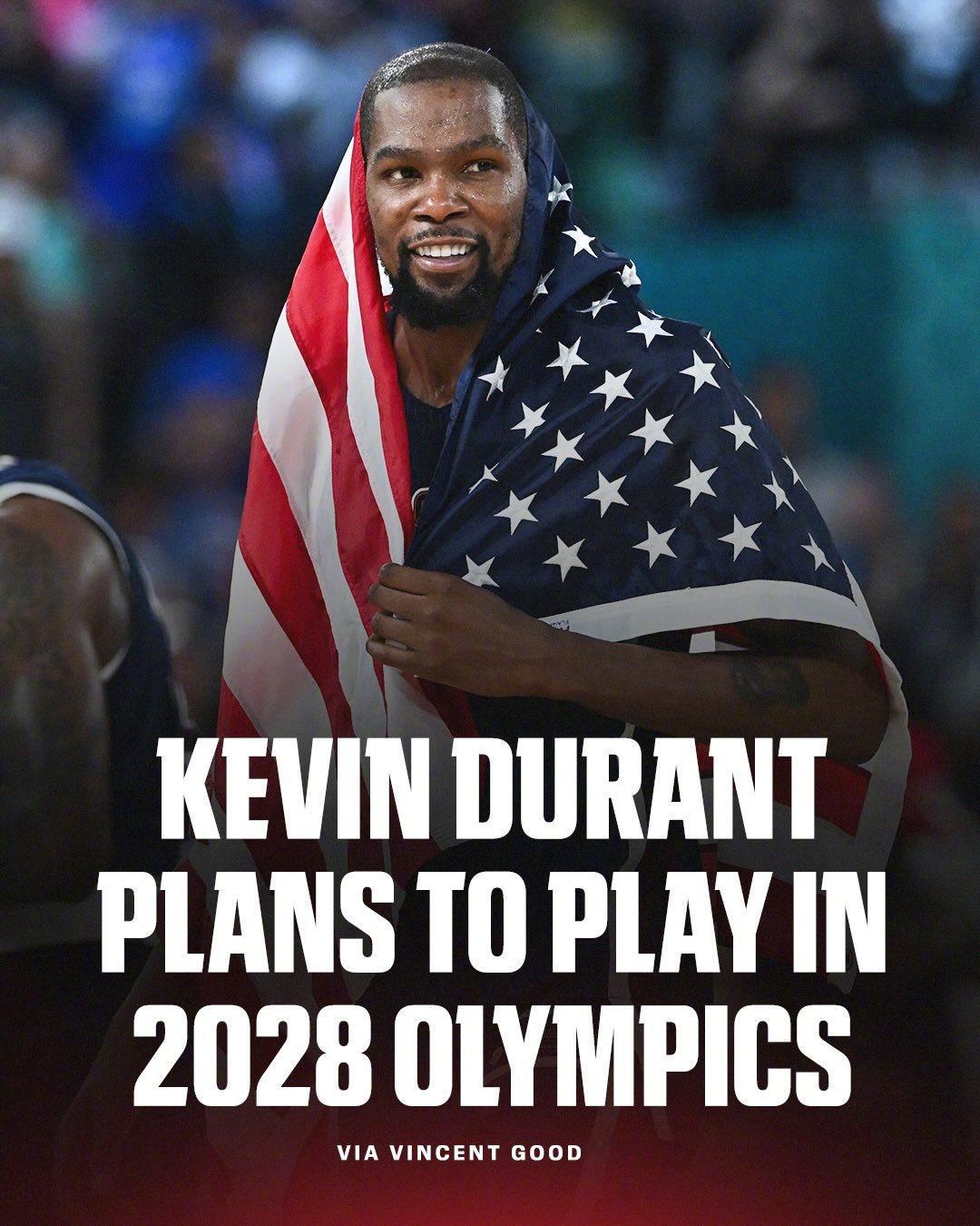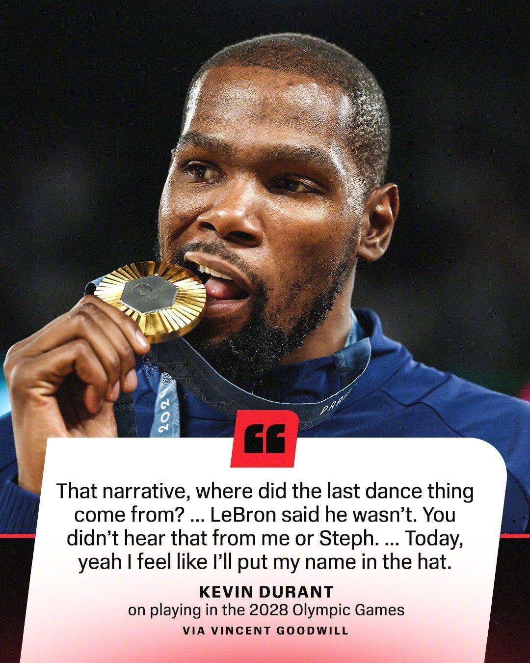 杜兰特接受ESPN采访时表示,他计划参加2028年洛杉矶奥运会!
