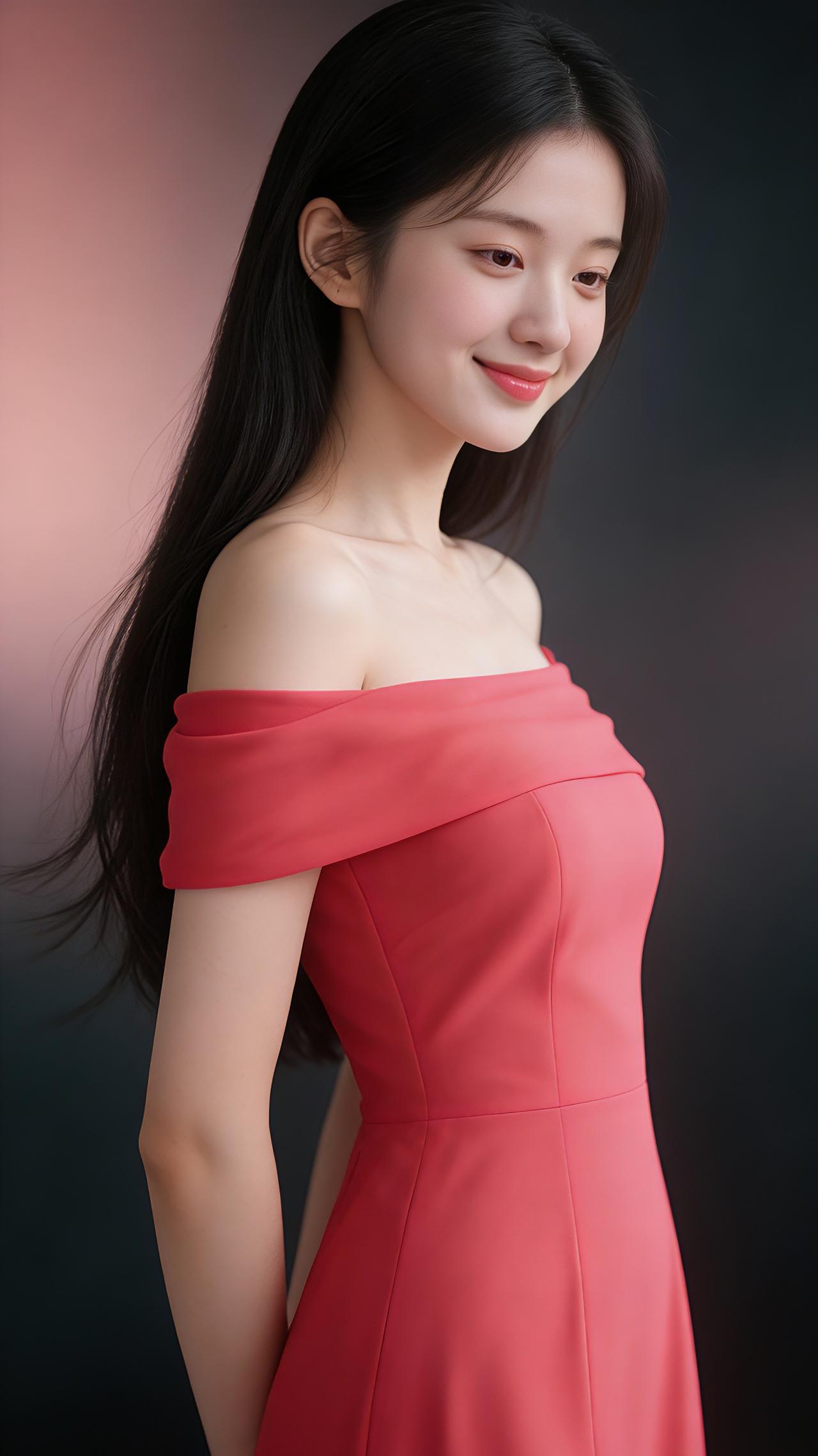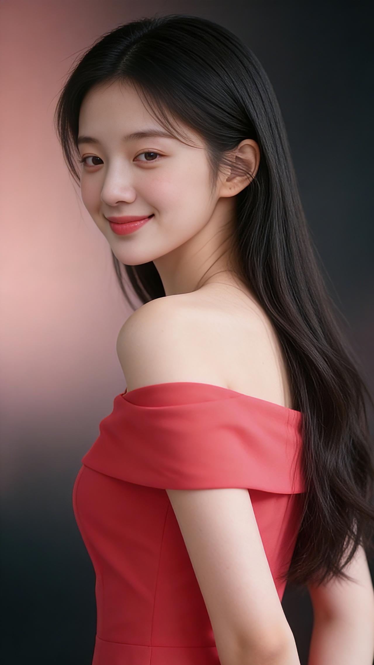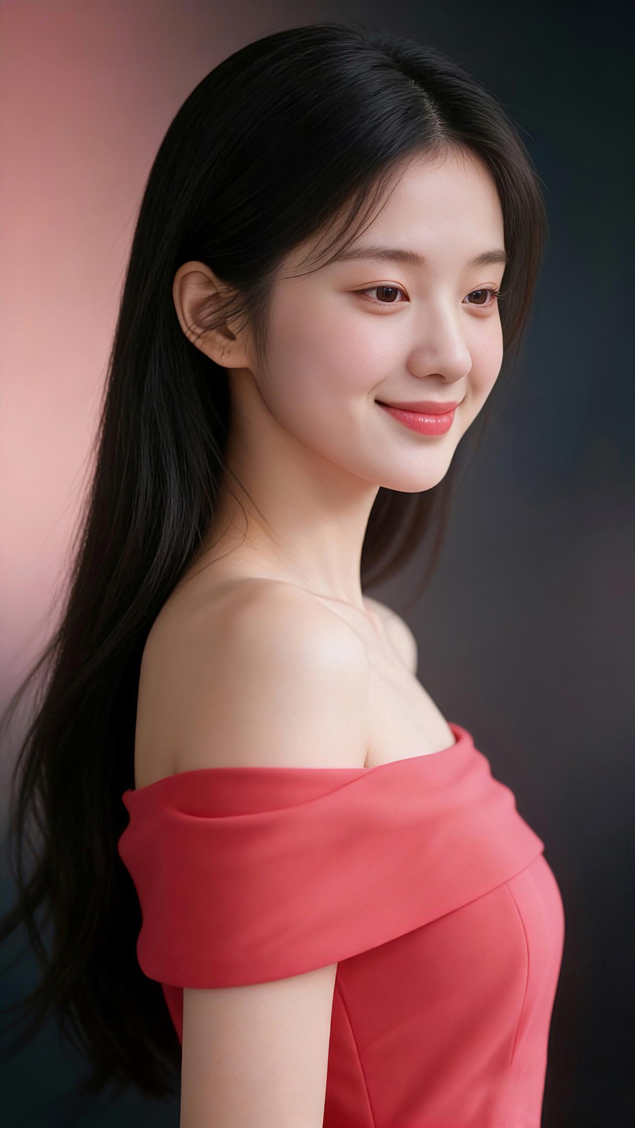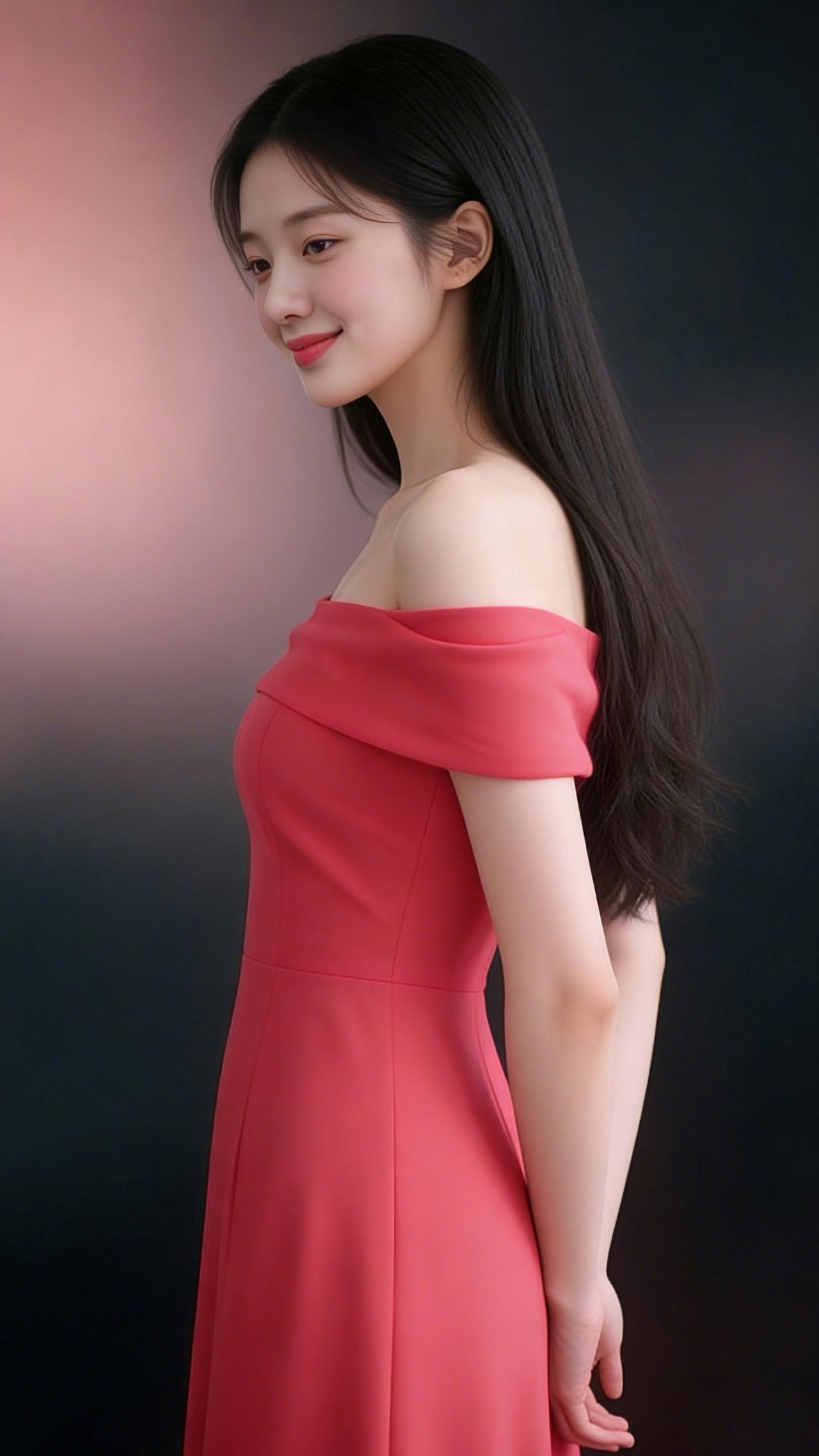 九帧同绘玫红露肩仙。乌发如瀑垂落亮泽,玫红裙展柔肩线,侧立浅笑眉眼含情。粉黑渐变背景衬静谧,温婉妩媚东方韵漫帧,浪漫如诗一眼沦陷! 图片为Al辅助完成,请注意甄别!