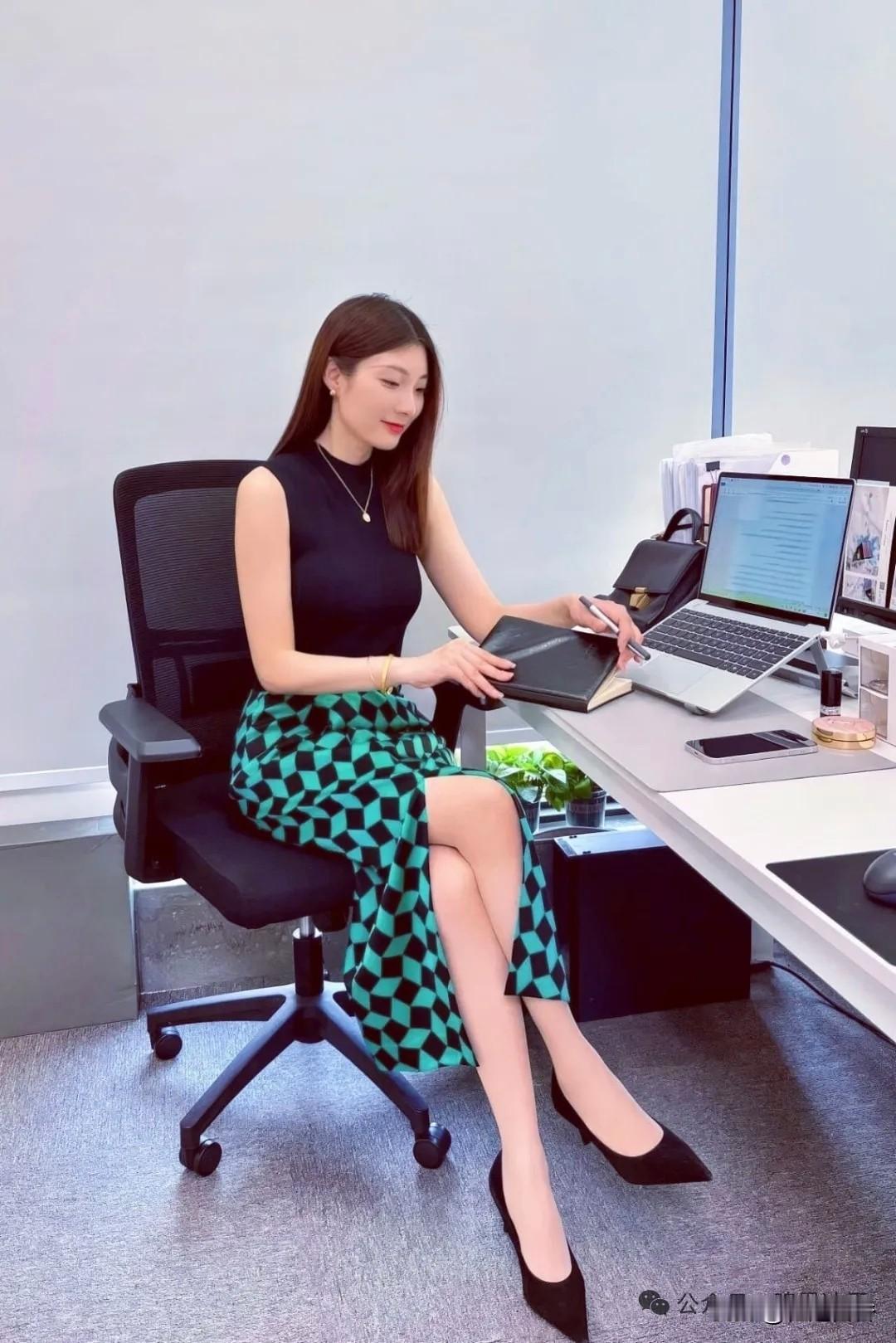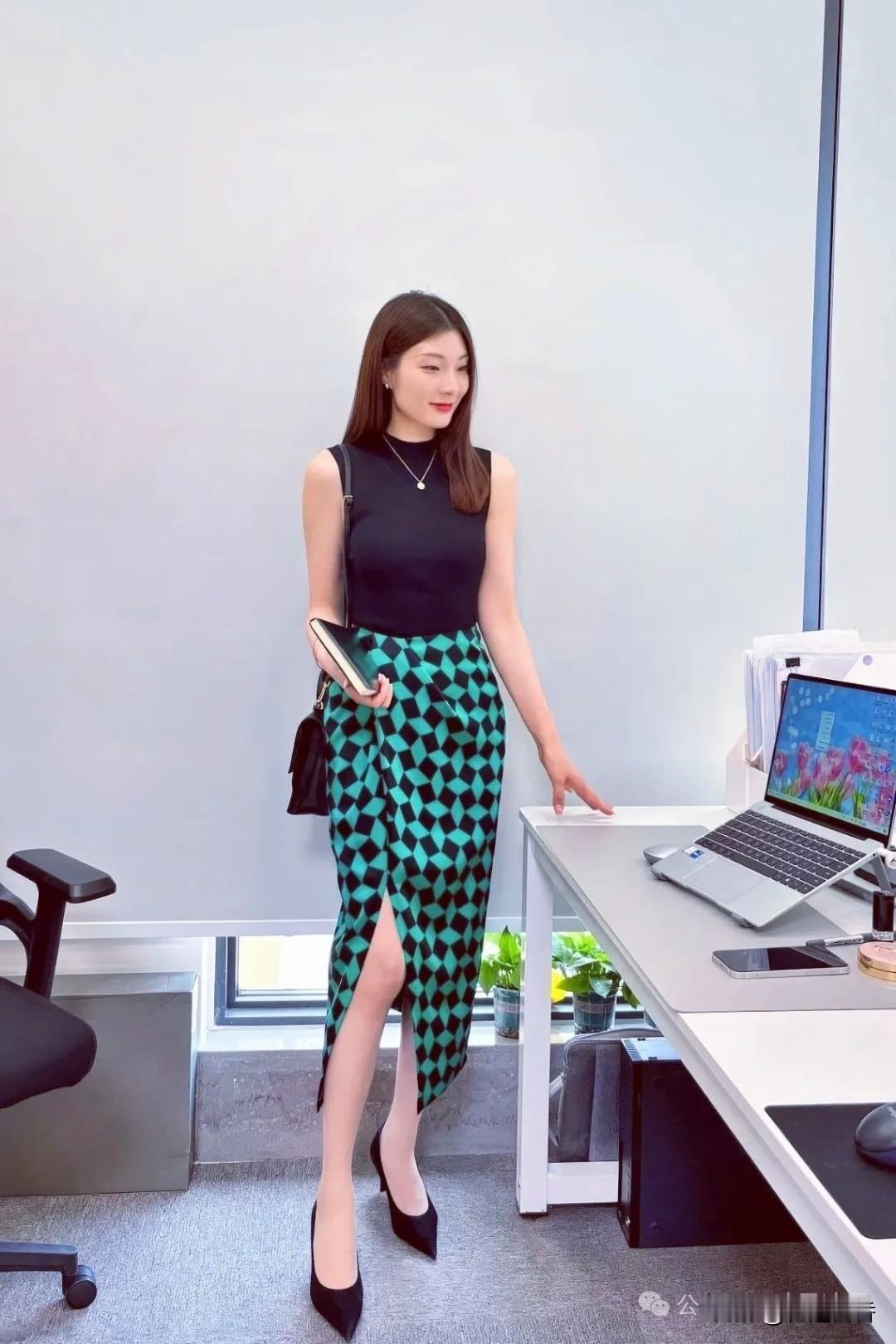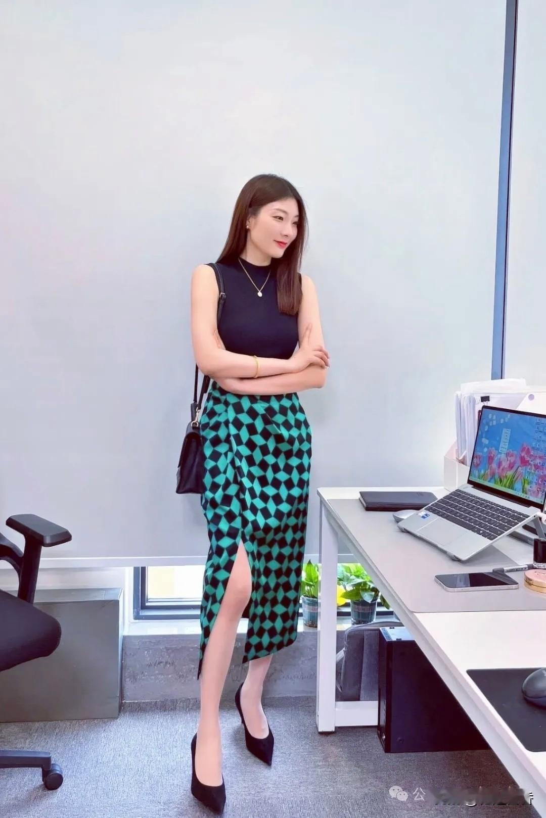 优雅职场风,黑绿撞色连衣裙搭配高跟鞋,自信满满!简单穿搭好看吗