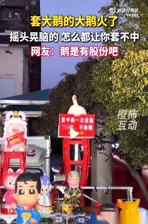 安徽一个套圈摊,老板把规则写得明明白白:套中大鹅,赏一百,但不给鹅。 一个大哥站定,手里的塑料圈捏得发白,瞄准,出手—— 那圈子在空中划出一道弧线,眼看就要落下去的零点一秒,鹅的脑袋突然启动,左闪,右晃,脖子拧成个麻花,身子还跟着节拍一起摇摆。 “啪”,圈子砸在土里,连根鹅毛都没蹭到。 人群里一阵哄笑,好几个人的手机镜头都快怼到鹅脸上了。 大哥不信邪,拿起第二个圈,换了个角度,猛地甩过去。 大鹅一个后仰,紧接着一个低头,动作行云流水,圈子又从它头顶飞了过去。 老板就在旁边抱着手,一脸平静,看着自己的“员工”疯狂上班。 这哪是套大鹅,这简直是在挑战一个自带走位、入股分红的守门员。