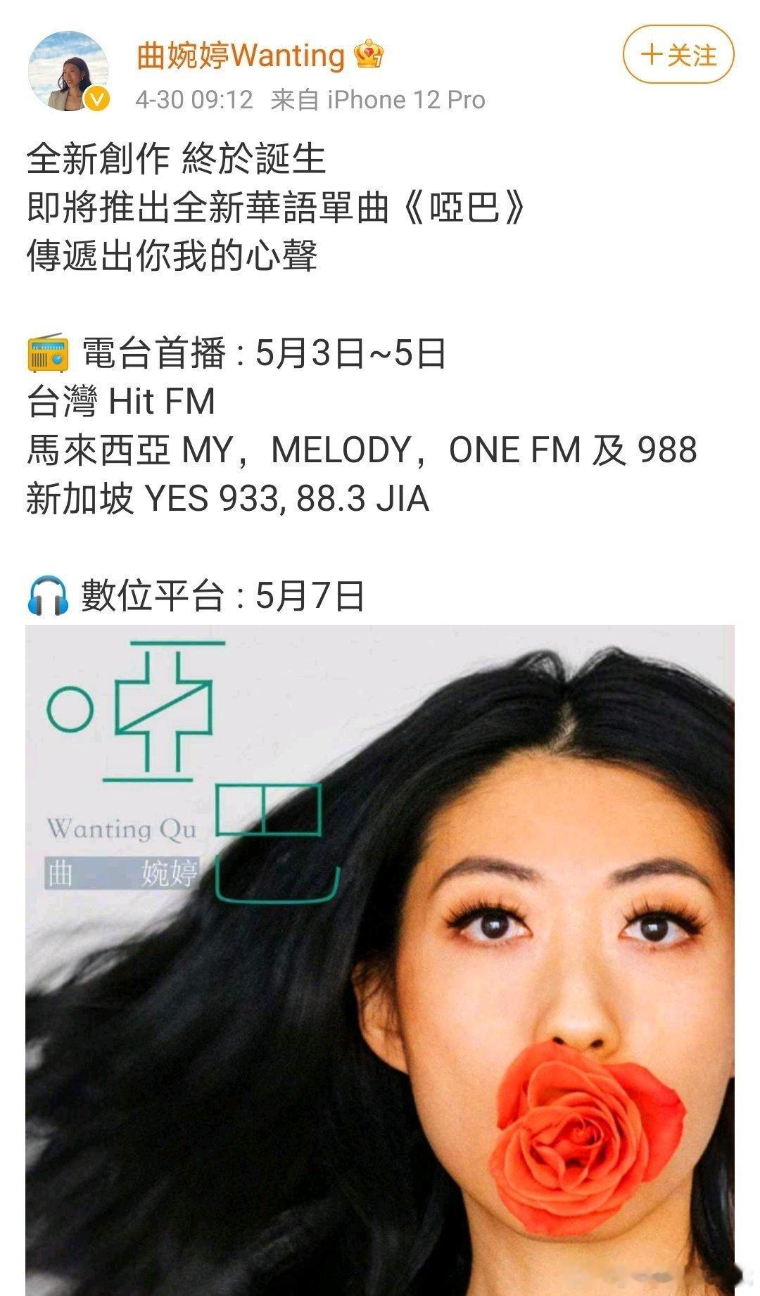 曲婉婷不是第一次尝试复出了,比如她2021年签约了台湾省某公司,出了一首歌叫《哑巴》,讲自己被网暴了。但这首歌没什么水花,台湾发展没成功,2026年又想复出了。曲婉婷试水复出被强烈抵制