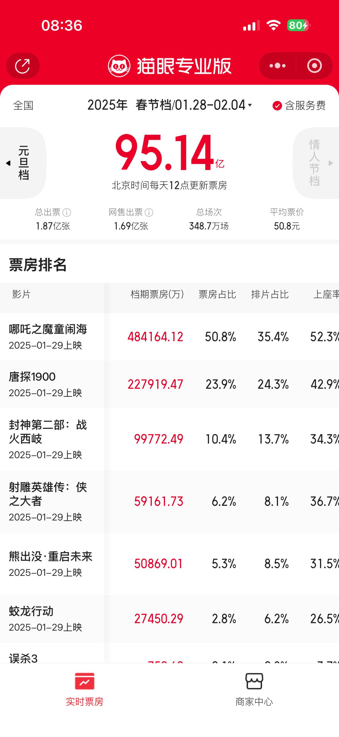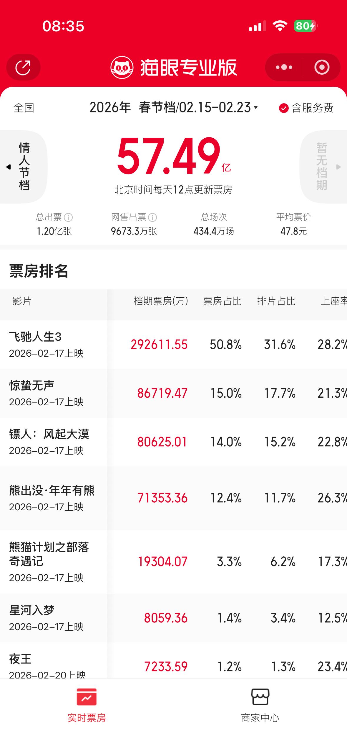 最近3年春节档电影票房 2026年,57.49亿 2025年,95.14亿 2024年,80.16亿