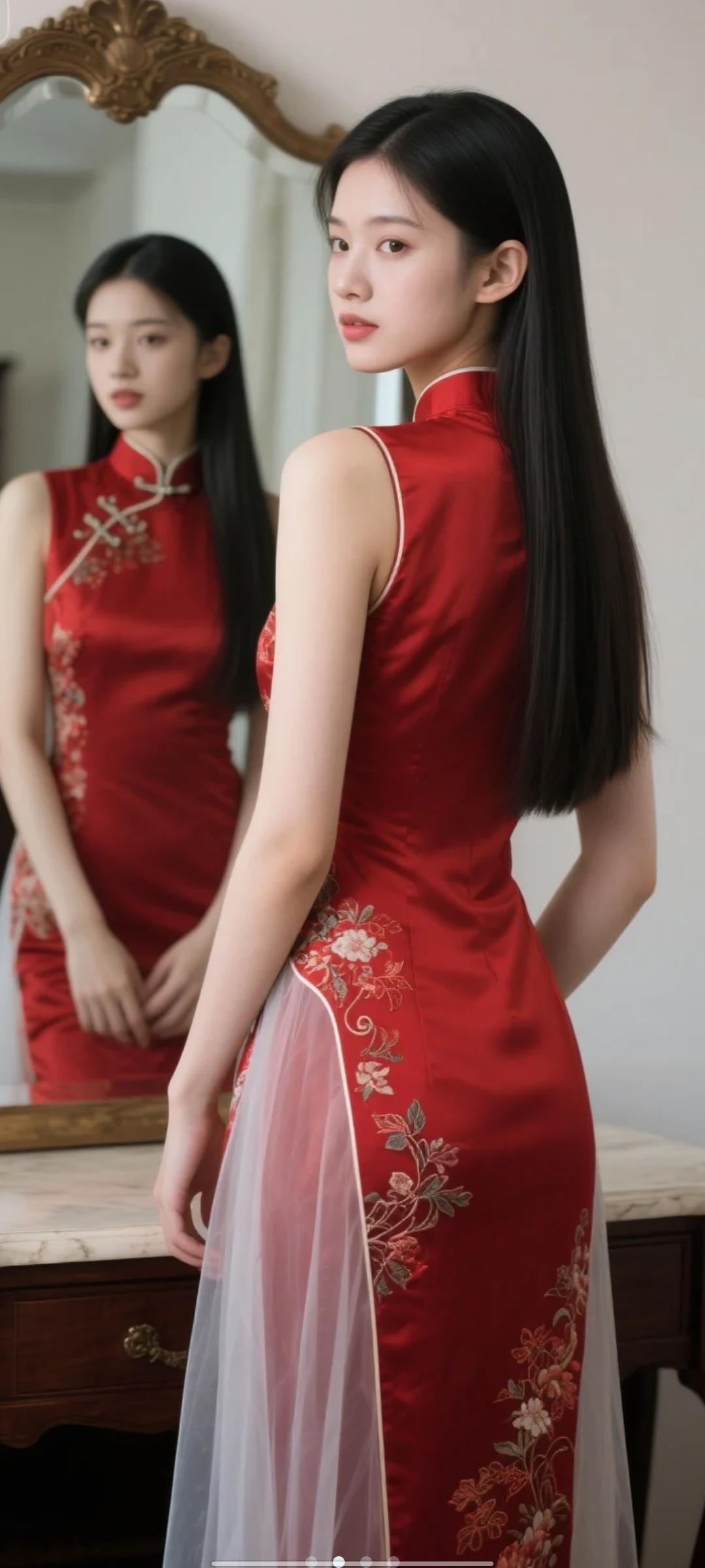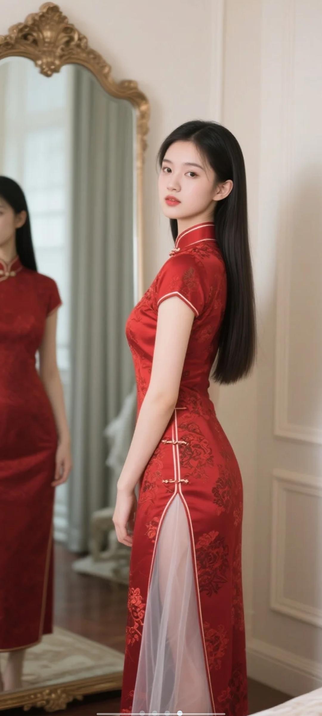 中式红色长款旗袍,宝子们感觉喜庆吗?