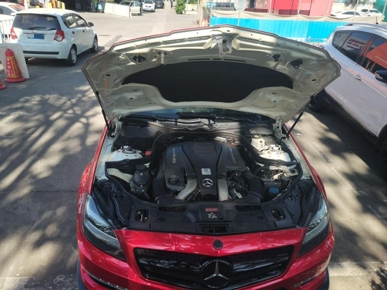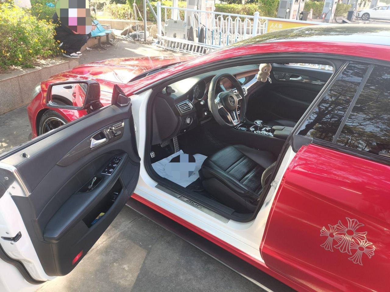 十四年前的恶魔眼,依旧是那么帅! 但这种帅气,少了点CLS的优雅,多了点儿凶狠,多了点儿运动美感; 没错儿,这是一辆爆改CLS63,全车贴改色膜,原车是白色,改装全车包围,改装轮毂,改装刹车盘,改装刹车卡钳,改装排气; 发动机没改,原厂的已经够凶猛了,525马力,700牛米,4.4秒破百,配上这套改装件,那是想怎么玩就怎么玩啊! 这就是我买了节前验的一台二手车,2012年11月上牌,跑了16万公里,二手卖20捆。 十四个年头了,帅是帅,但车况如何呢? 详细检验一番,外观就右前翼子板钣金,左后尾灯更换;内饰正常使用磨损,主驾座椅小破皮; 发动机没有任何拆装维修,但气门室盖渗漏,正时罩盖渗漏,油底壳渗漏; 变速箱机脚更换,油底壳渗漏,后差速器轻微渗油,左后气囊减震更换; 结果一般般,开是开的住,但可劲的霍霍就不太现实了; 20捆买的是外观和车标,至于飙车,看车主的心情吧!