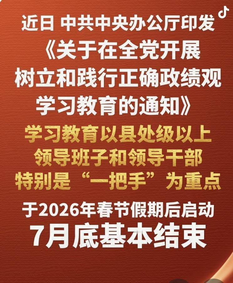 今年的学习教育即将开始了,主题内容为:树立和践行正确政绩观。以县处级以上领导班子和领导干部特别是“一把手”为重点。 这也是十五五开局之年的首次学习教育,以政绩观为主,也是推进反腐倡廉工作的一项重要抓手。反思那些被查处的官员,很多都与在岗在位期间,政绩观错位,背离初心使命,为民服务意识欠缺,为了一己私利,甚至大搞面子工程有关, 这些都是要不得的。 开展好学习教育,要严格落实各项学习规定,不能扎扎实实图形式、走过场。县处级以上领导干部掌握一定的权力,把他们纳入作为学习重点对象符合实情,要杜绝那种全员纳入学习的大囫囵式学习教育方式,不但达不到预期效果,反而还会增加其他人员负担。