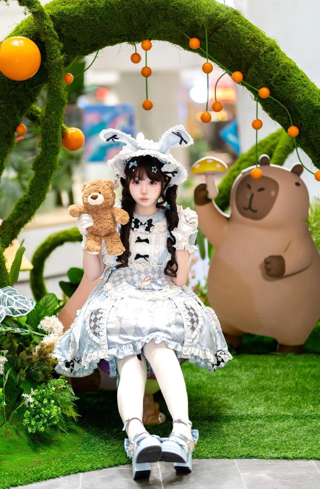 今日份甜妹已上线。镜中奇遇兔真的太可爱啦!Lolita 甜妹 萌妹子 拾贝诗Lolita