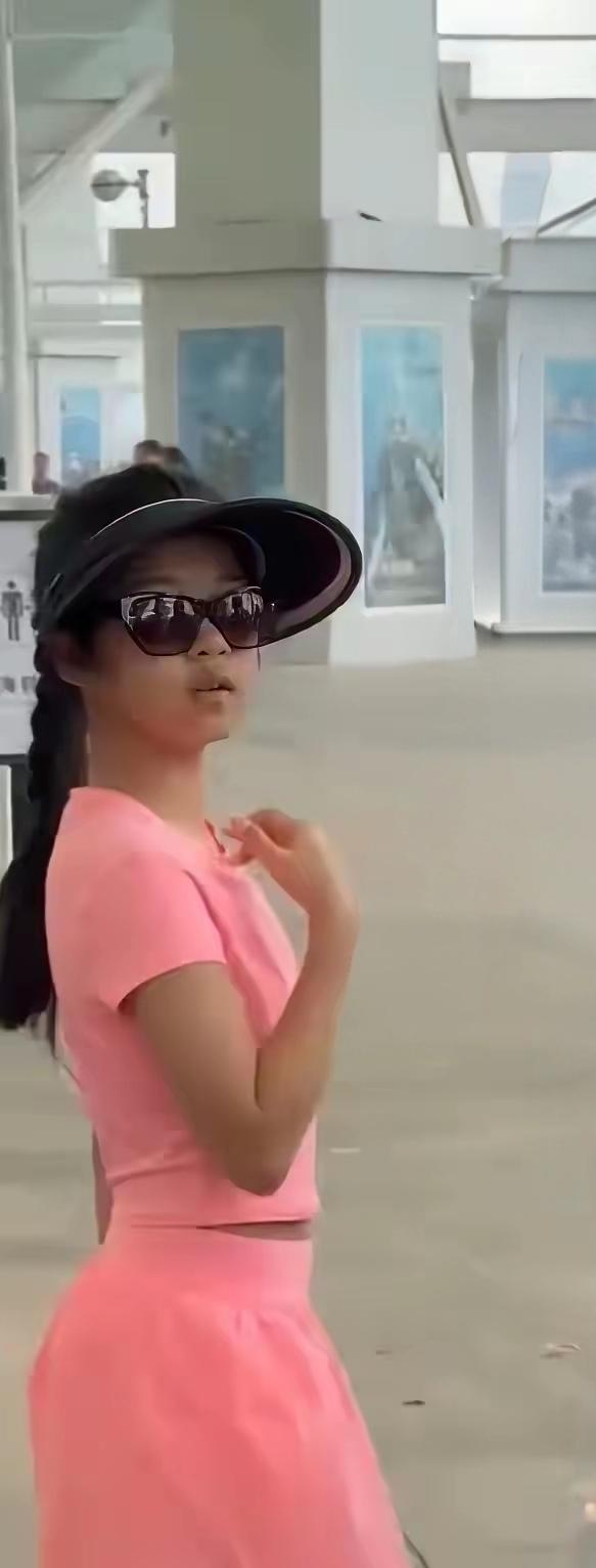 一身粉嫩打扮的小醒醒,神情体态越来越像妈妈章子怡。