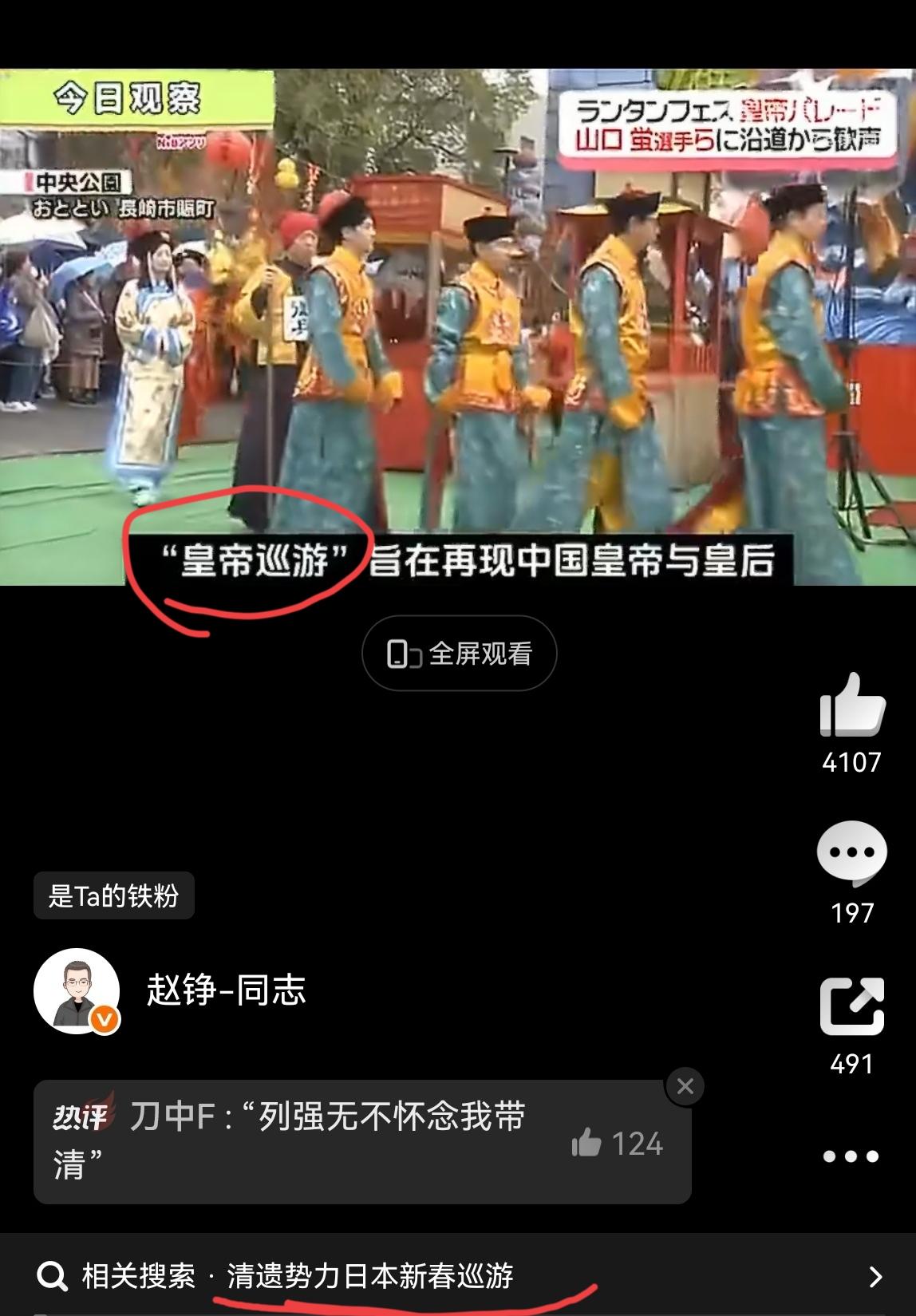 中国在日本穿汉服,日本网友在网上反应有点应激了。 该说不说,日本人最喜欢中国人穿上清朝服饰,每年他们都会和清遗势力举行穿清朝服饰的巡游活动,并且还要电视转播。 因为这样能让日本产生前所未有的优越感。 因为在中国别的朝代,日本是附属国、是朝贡国,是战败国。 但在清朝,旗人皇帝阶层最后认他为主人,当了他的走狗。帮助他们获取了天量战争赔偿,最后差点洗劫了所有华夏财富。 所以今天中国发展的越好,本子发展的越惨,这种反差越大他们心态也就越失衡。 所以列强们无不怀念大清,归根结底是怀念那个他们说打就打说抢就抢的时代。 所以本子和他培养的走狗们,正在玩命的想让我们脱下汉服穿上清朝的服饰。 但是我们现在的年轻人充满了自信,根本不吃它们这一套。
