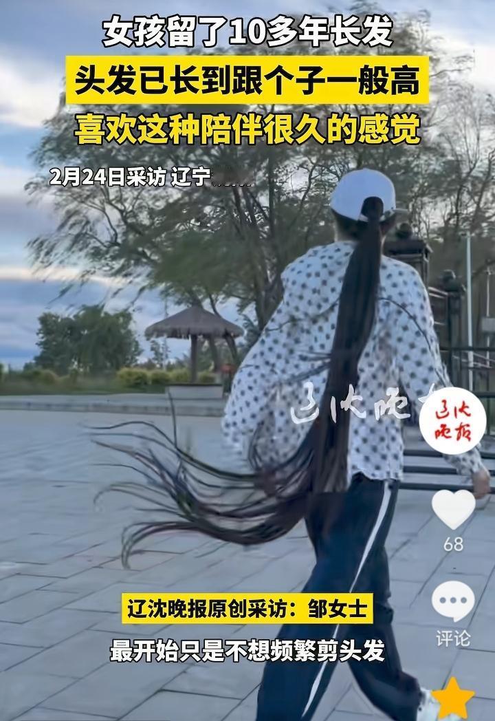 有耐心!辽宁沈阳,女子留长发十几年,如今头发已经长到和个子一般高。女子称,最开始只是为了不频繁剪头发,后来就慢慢习惯了长发的状态,也越来越喜欢这种陪伴自己很久的感觉,慢慢就保持到现在这么长了,十几年的长发更像是一种习惯和自己独有的样子。 这头发留的真是长,现在留这么长头发的人已经极少了,主要也是难得收拾,洗一次头估计都要大半天,如今既然已经留起来了,时间长养成习惯了,想剪也是舍不得了。 留了十几年头发,可见女子是一个非常有耐心的人,而且还是一个慢性子的人,要是急性子估计早就剪短了。
