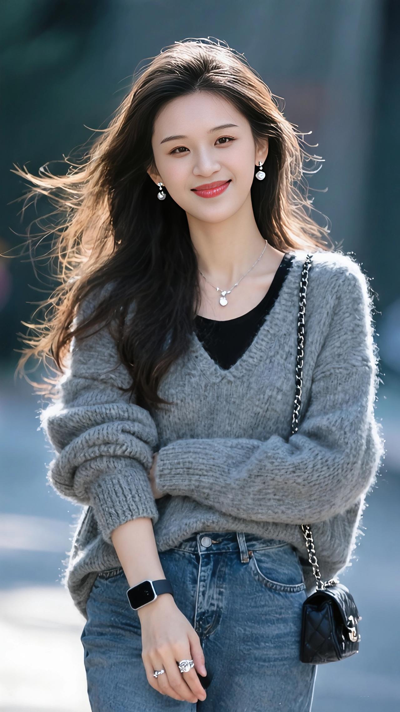 冬阳漫过街角,浅粉大衣裹着温柔,金环轻晃,笑靥里藏着一整个季节的暖意。 高贵的气质女人 浅粉衣袂趁晴光, 鬓畔金环映晓霜。 手挽高领风初软, 眸含秋水意偏长。 街隅人静尘嚣远, 镜里容新岁月香。 一抹温柔凝笑靥, 冬阳漫染旧衣裳。 温柔高贵的女性 轻熟女人味 贵气女人味 阳光斜斜地, 吻过你发梢的绒。 浅粉的大衣, 裹着一整个冬天的软。 金环在耳尖轻晃, 像把细碎的星子, 别在了时光的耳后。 你指尖轻触高领, 把风的温度, 悄悄藏进袖口。 橱窗里的倒影, 和你一样安静。 街声远了, 只剩冬阳漫过肩头, 把你的笑, 染成了暖色调的诗。