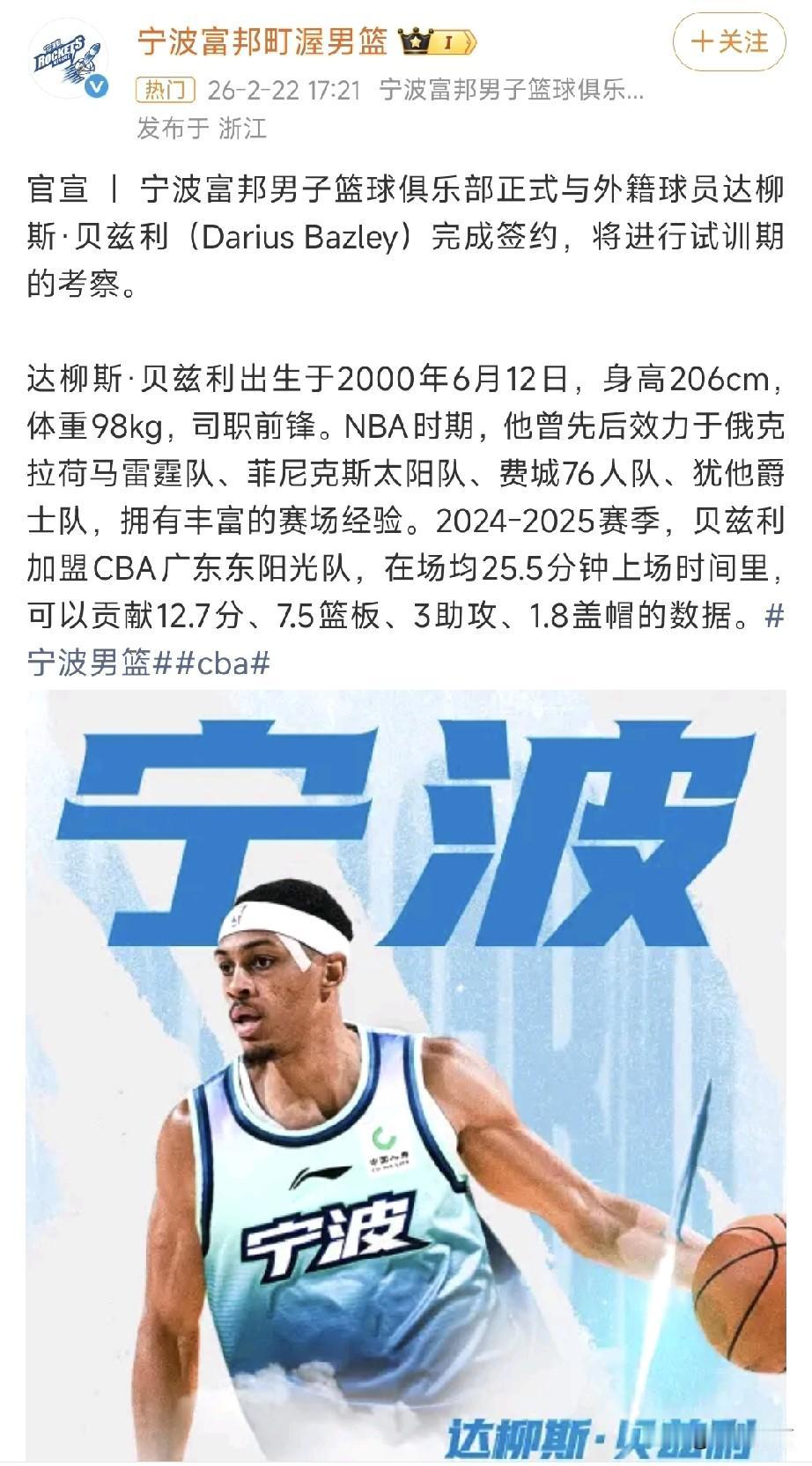 没想到,贝兹利竟然被宁波队签回CBA了,以他的防守能力,这如果遇到广东队,广东队这群锋线谁能发挥? 杜润旺、张皓嘉这些人恐怕是难以在贝兹利的防守下,有好的表现了,不被贝兹利多送几个火锅,都算有好的发挥。 可能也就崔永熙能拿得出手了,这也是比较考验崔永熙的伤病恢复如何了,有贝兹利给他上上强度,也能够更好的看出崔永熙状态如何。 再加上宁波队内线还有个法尔,这两人合体上来的防守强度,就很考验广东队的进攻了,如果再输宁波,可就是被赛季双杀了。