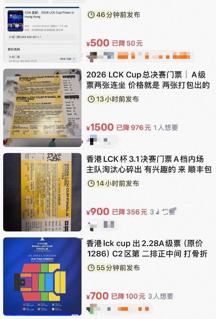 没有稳赚不赔的买卖!T1被DK让二追三后,LCK杯决赛门票价格暴跌,本都是降1/3甚至腰斩的,且绝大部分都是直接原票价出。