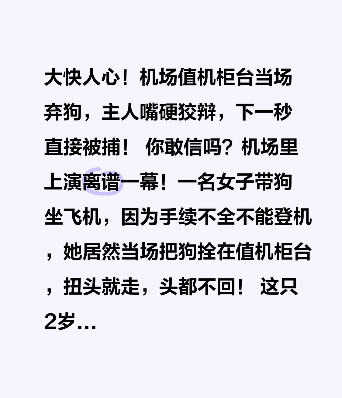 大快人心!机场值机柜台当场弃狗,主人嘴硬狡辩,下一秒直接被捕! 你敢信吗?机