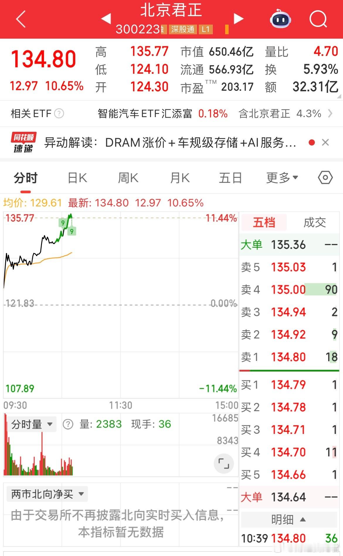 漂亮早盘内限介入的$北京君正 sz300223$ 现在盘中强势拉升十几厘米,恭喜提前加入的家人们,收益满满!机会都是留给有准备的人!今日看盘上证指数a股