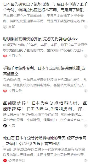 日本最先研究出了氢能电池,于是日本申请了上千个专利,独家生产,等着躺着挣钱,结果,比亚迪,特斯拉根本不用,而是用了磷酸铁锂电池,率先占领了电车市场,日本失去了先机! 麻烦看官老爷们右上角点击一下“关注”,既方便您进行讨论和分享,又能给您带来不一样的参与感,感谢您的支持! 上世纪 90 年代,全球汽车行业还在燃油车时代稳步前行,日本车企却已经把目光投向了更远的未来。以丰田、本田、日产为核心,整个日本汽车产业几乎达成共识,集中资源全力押注氢燃料电池技术路线。 在他们看来,氢能能量密度高、加注速度快、排放只有水,是最接近终极能源的方案。只要把这条路线吃透,就能牢牢掌控下一代汽车的核心命脉,彻底甩开其他国家的竞争。 为了实现这个目标,日本企业开始了疯狂的专利布局。从燃料电池电堆、质子交换膜,到高压储氢罐、催化剂材料,几乎每一个关键环节都被严密覆盖。 截至 2024 年底,日本在氢燃料电池领域持有的核心专利已经超过 5000 项,仅丰田一家就掌握了 3000 多项相关专利,形成了一道几乎无法绕过的技术壁垒。 日本的思路很明确,用技术专利筑起高墙,自己独家研发、独家生产,等全球都转向氢能时,其他车企只能乖乖支付专利费,自己就能靠技术垄断轻松获利。 他们不仅投入海量资金研发,还配套推进加氢站建设,累计投入数百亿美元完善基础设施,试图用整套体系锁定胜局,把氢能汽车变成日本制造的下一个时代标签。 可现实并没有按照日本设想的剧本发展。氢燃料电池看似完美,却有着难以回避的硬伤,最突出的就是成本居高不下,整车售价远高于普通电动车,普通消费者根本难以承受。 另一个致命问题是基建难度太大。加氢站建设成本高、审批复杂、安全标准严苛,很难像充电桩那样依托现有电网快速普及,私人用户更无法像充电一样在家完成补能。 这就导致氢燃料电池车始终停留在小众示范阶段,无法走进普通家庭,更难以形成规模化市场,技术再先进,没有大规模应用就无法持续迭代降本。 就在日本埋头深耕氢能、构筑专利壁垒的同时,中国和美国的车企走出了一条完全不同的道路。比亚迪、特斯拉等企业没有跟风氢能,而是坚定选择了磷酸铁锂电池路线。 磷酸铁锂电池没有氢能那么理想化,却胜在足够务实。它成本更低、安全性更好、生产供应链成熟,而且充电设施可以依托现有电网快速铺开,普通人买得起、用得方便。 这条路线没有复杂的技术垄断,更强调开放协作与规模效应。随着产能不断扩大,电池成本持续下降,续航和耐用性也在快速提升,完美契合民用市场的真实需求。 短短十几年时间,磷酸铁锂电池驱动的纯电动车迅速席卷全球。比亚迪凭借全产业链优势,年销量突破数百万辆,特斯拉则用高端产品打开全球市场,两者共同定义了新能源汽车的主流方向。 对比之下,日本押注的氢燃料电池车处境格外尴尬。作为代表车型的丰田 Mirai,自 2014 年量产以来全球累计销量仅 8000 辆左右,2025 年全年销量更是只有一千多辆。 这个数字别说和头部电动车企相比,就连日本本土的普通燃油车销量都远远不及。曾经被寄予厚望的终极方案,在市场面前遭遇了彻底的冷遇。 日本原本指望用专利封锁掌控行业走向,可现实是,主流市场直接选择了另一条没有专利壁垒的赛道。封闭的专利策略,最终败给了开放协作的锂电产业链。 市场用销量给出了最直白的答案:技术再先进,也要贴合用户需求、适配产业现状,脱离实用与普及的技术,再完美也只能是实验室里的展品。 面对纯电动车市场的压倒性优势,日本车企再也无法坚持纯氢路线。近年来,丰田、本田、日产纷纷调整战略,大幅加大纯电动汽车的研发与投放力度。 为了快速跟上节奏,不少日系车型直接放弃自研电池,转而采购中国企业生产的磷酸铁锂电池,曾经的技术领跑者,不得不转身成为赛道的追随者。 日本并没有完全放弃氢能,目前仍在商用车、特定场景继续推进研发,但在民用乘用车领域,氢能已经彻底输给了磷酸铁锂纯电路线。 这场持续数十年的技术路线之争,最终以实用主义的全面胜利告终。它也给全球科技产业留下一个深刻教训:真正的领先,不是用专利把路堵死,而是用产品把路走宽。 谁能贴近市场、满足用户、适配产业链,谁才能真正赢得未来。靠垄断思维试图躺赢,最终只会被市场和时代一起抛弃。