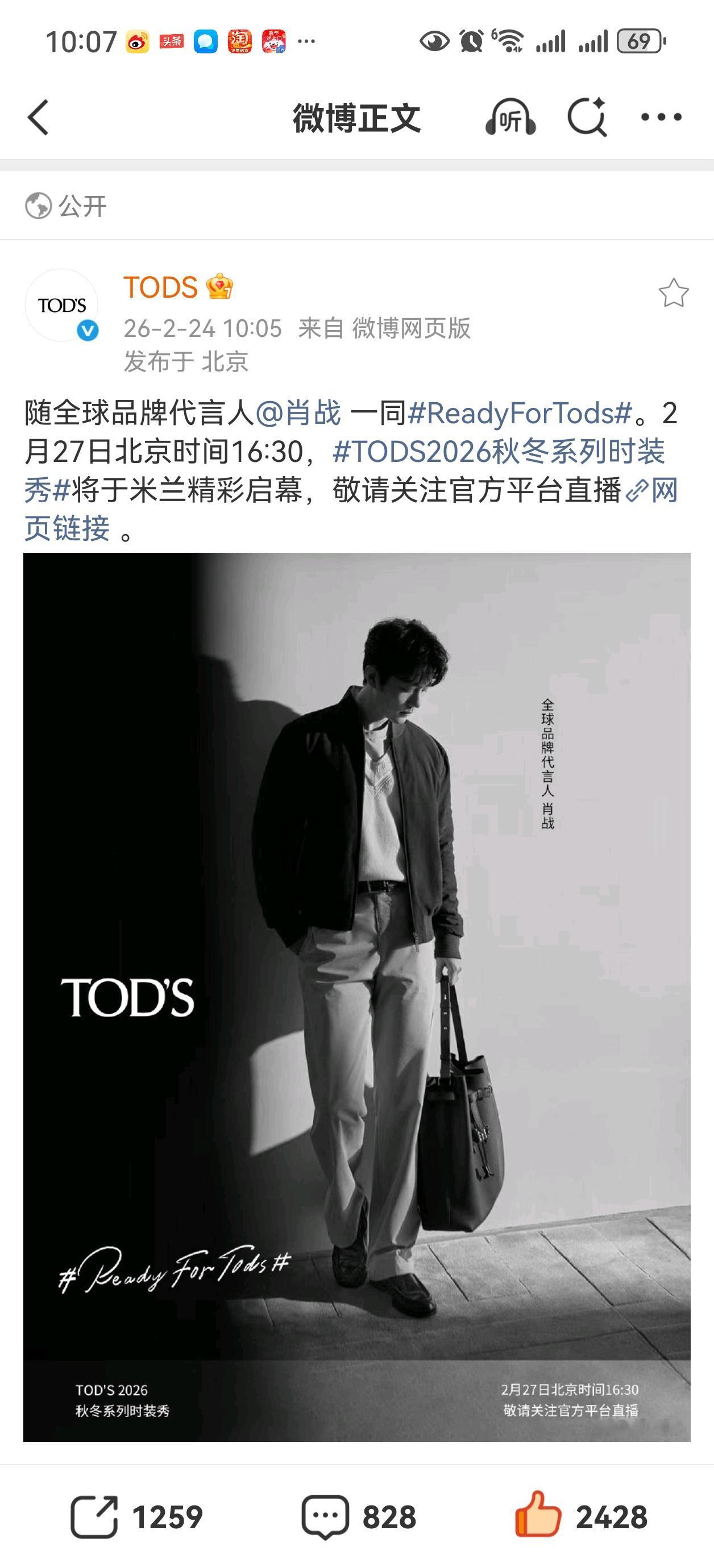 tods和Gucci都官宣肖战即将出席2026年米兰时装周[爱慕][爱慕][爱慕] 希望战战可以看到海虾们准备的米兰电车[赞][赞][赞]