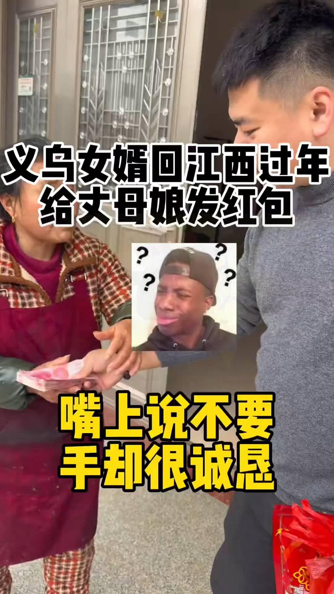 义乌女婿回江西过年,给丈母娘发红包,嘴上说不要,手却很诚恳。