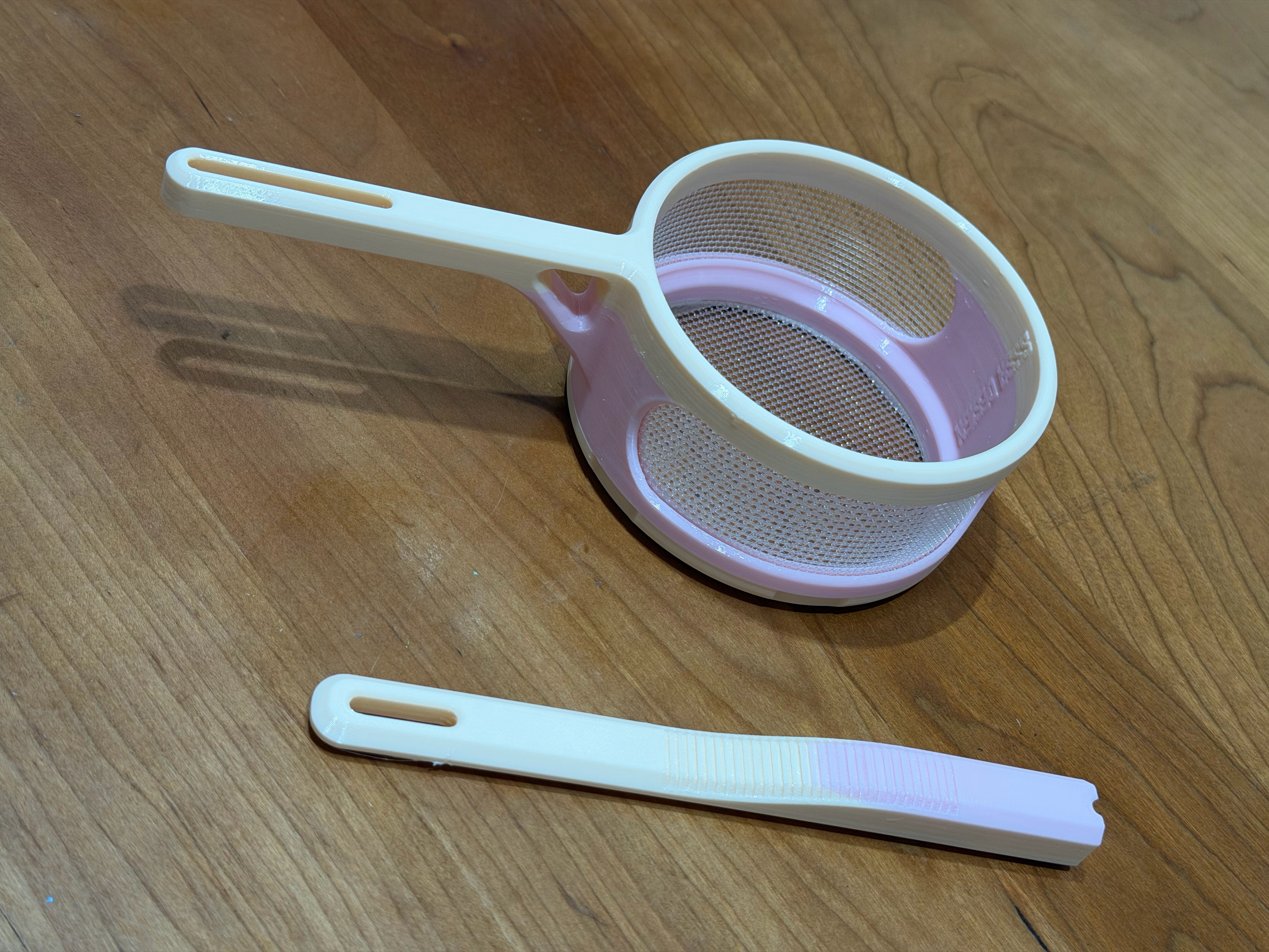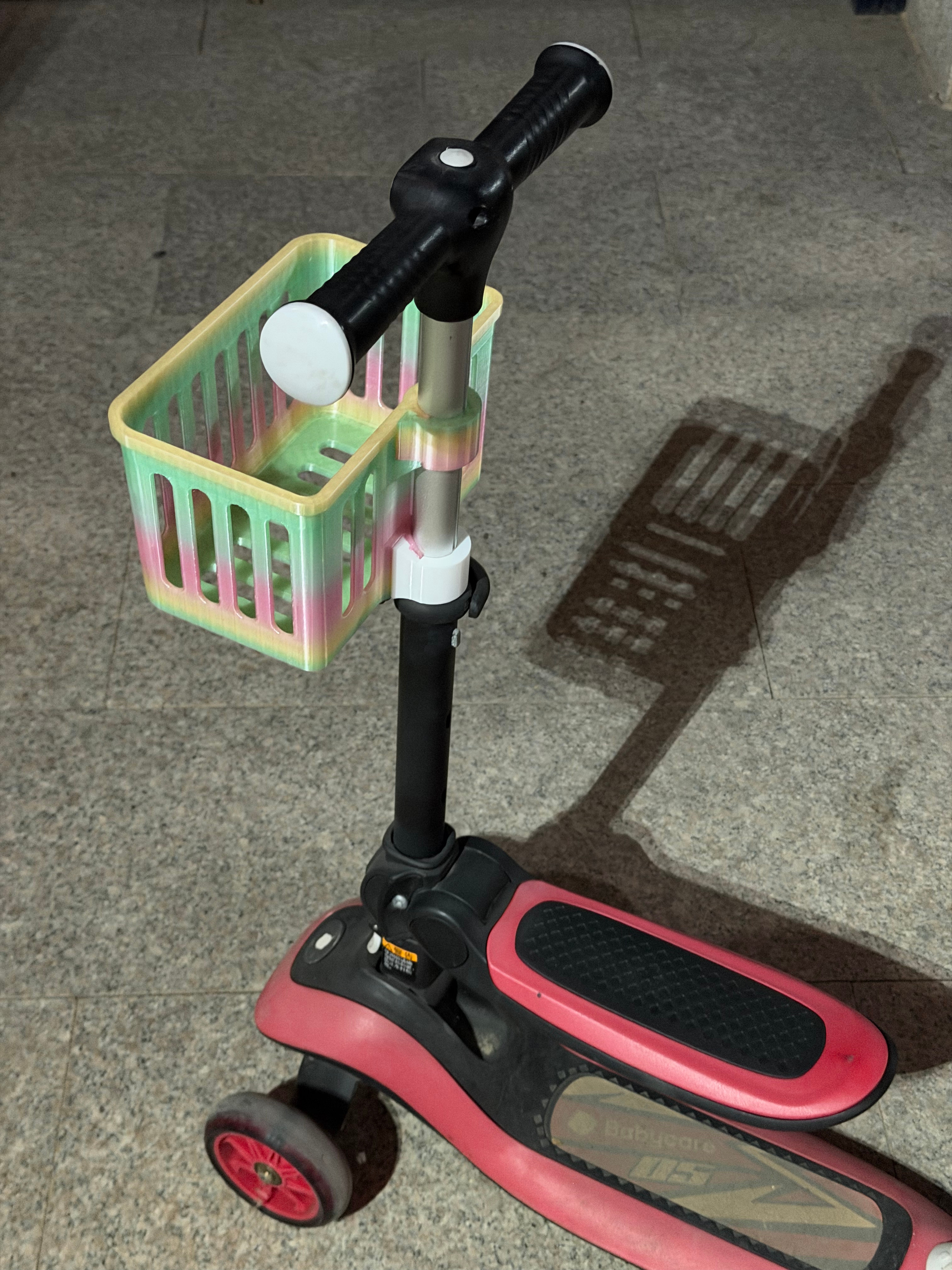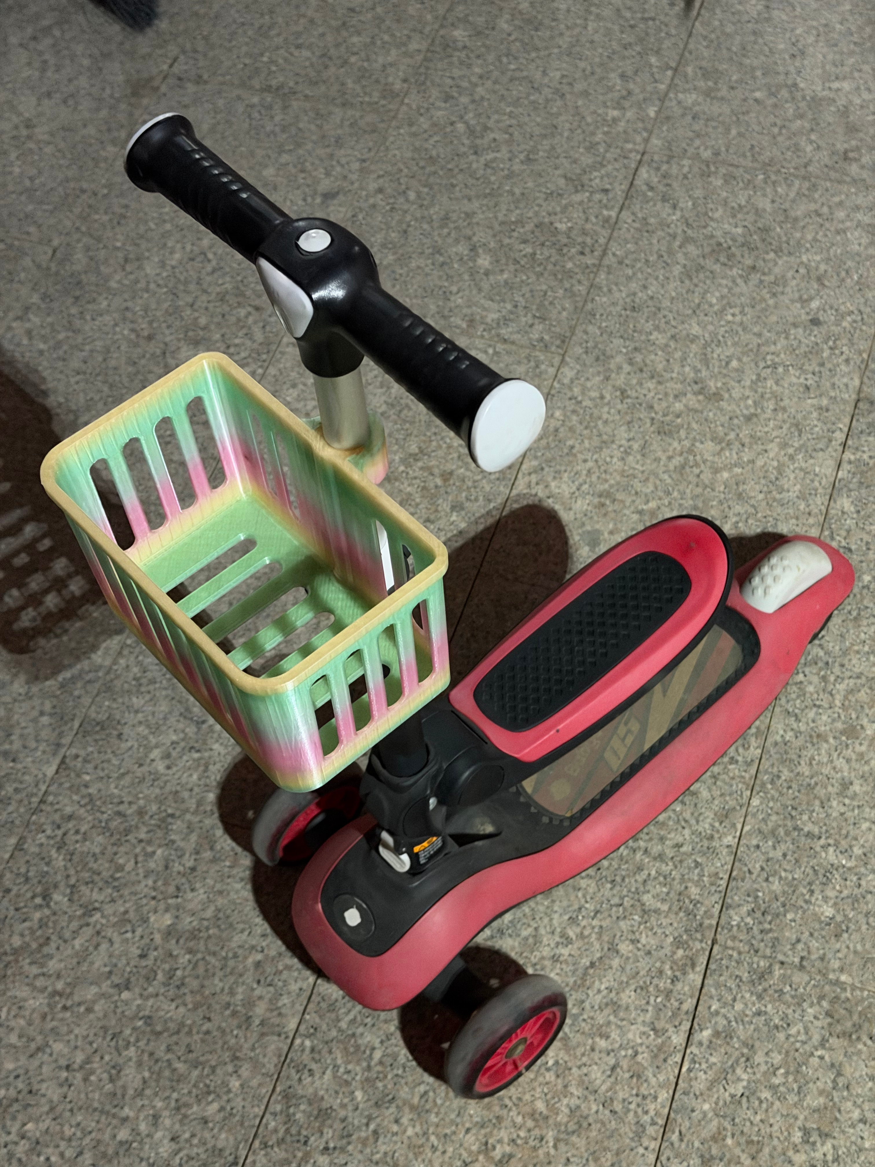 假期3D打印的几个实用的东西:躲避假山、鱼网、滑板车的储物筐。