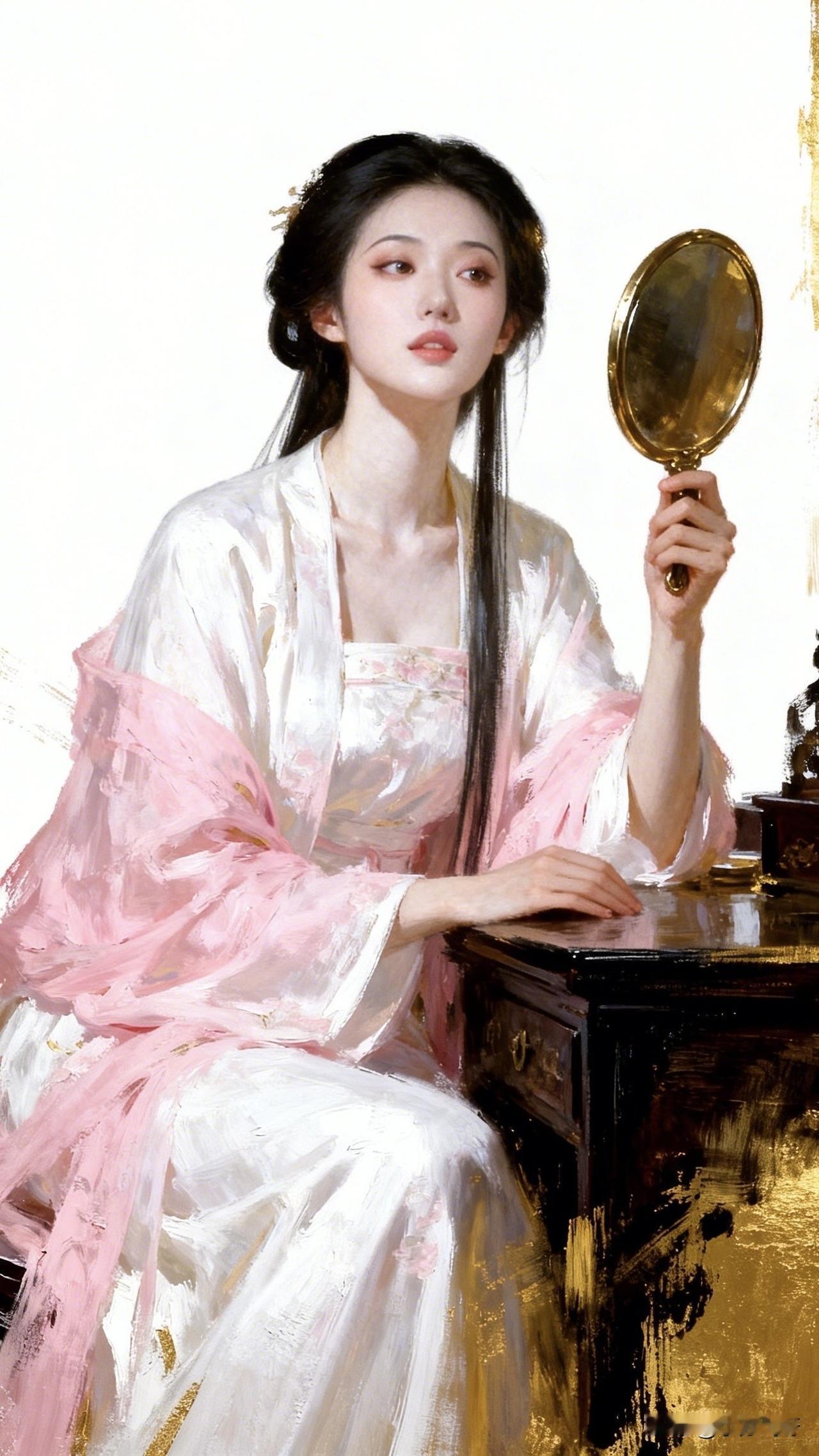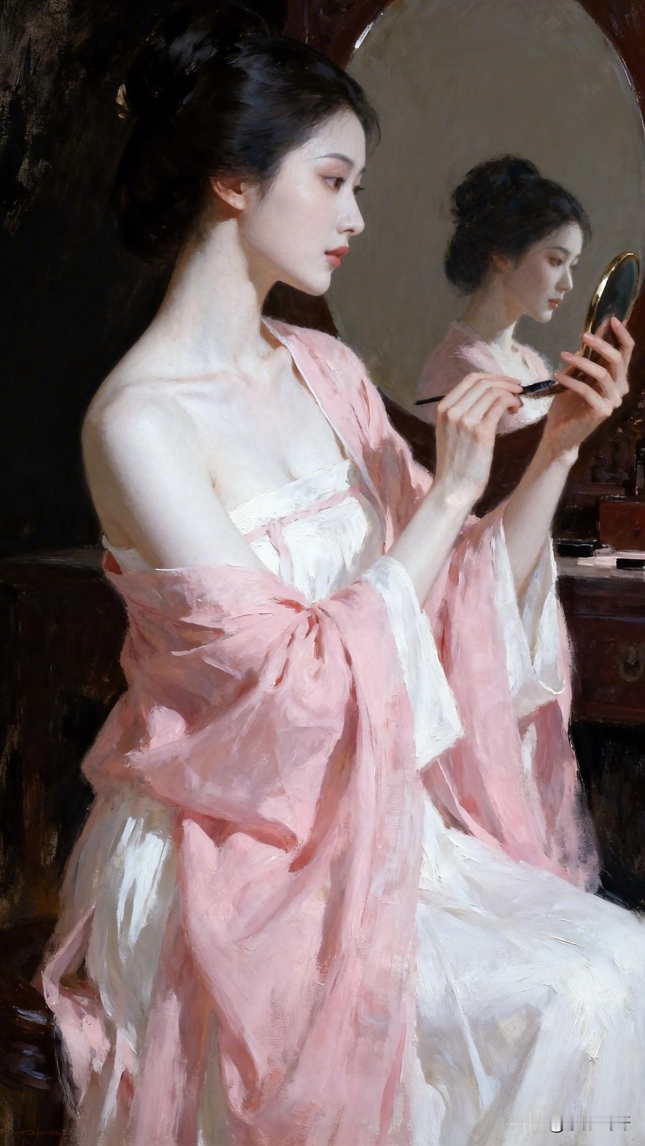 爱上油画 :眉眼似藏江雨烟,身姿盈盈,看着这被岁月雕琢出的优雅,不禁又想吟诗一首:“黛眉含韵映丹青,浅笑盈盈梦亦馨;罗袖轻扬风袅袅,古风雅韵画中凝。”