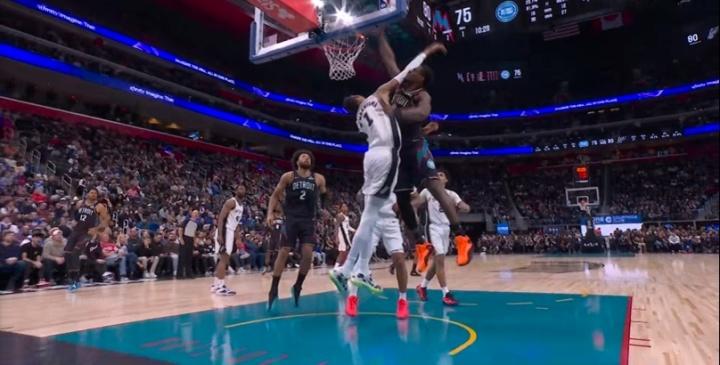 状元对状元,坎宁安不信邪,偏要突入篮下进球,文班亚马毫不客气送上残暴盖帽。杜伦说既然老大被三次羞辱,那我找找场子,随后隔扣文班亚马成功打2+1。 本场文班亚马对活塞贡献14分14板4助攻1断5盖帽,非常全面,坎宁安表示吃火锅吃饱了。 文班三分球能顶着防守进,能持球攻,协防速度极快,未来是文班亚马的天下。