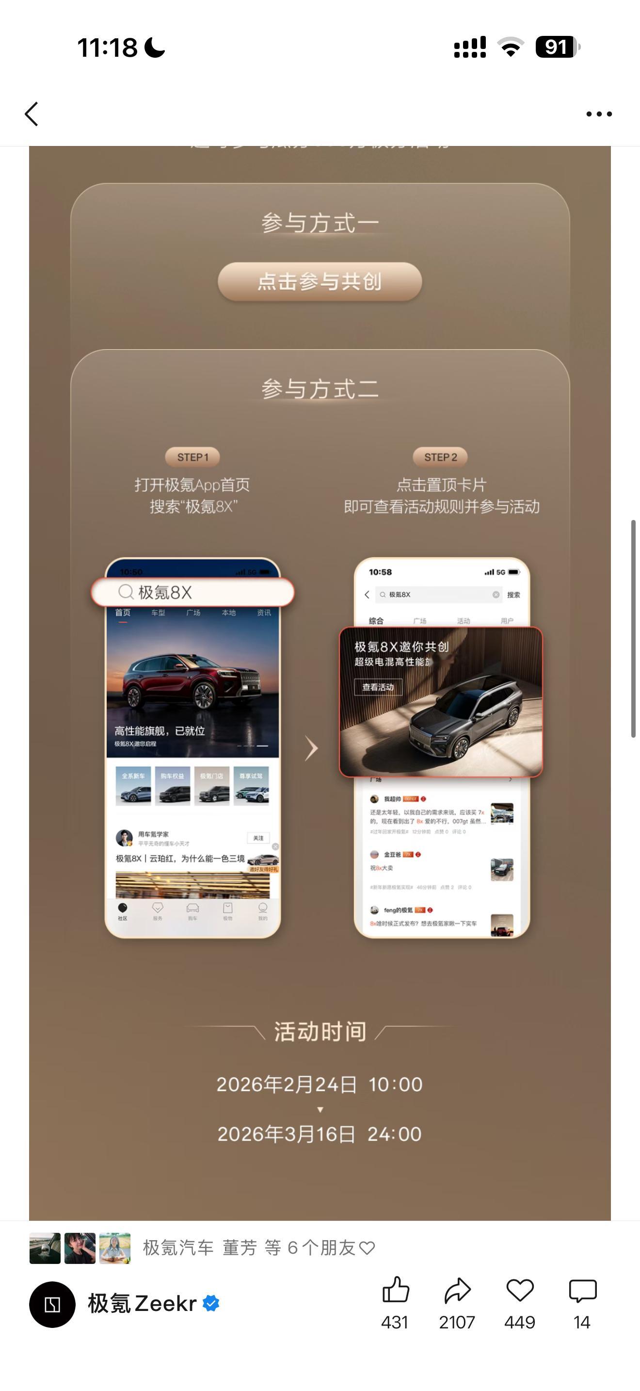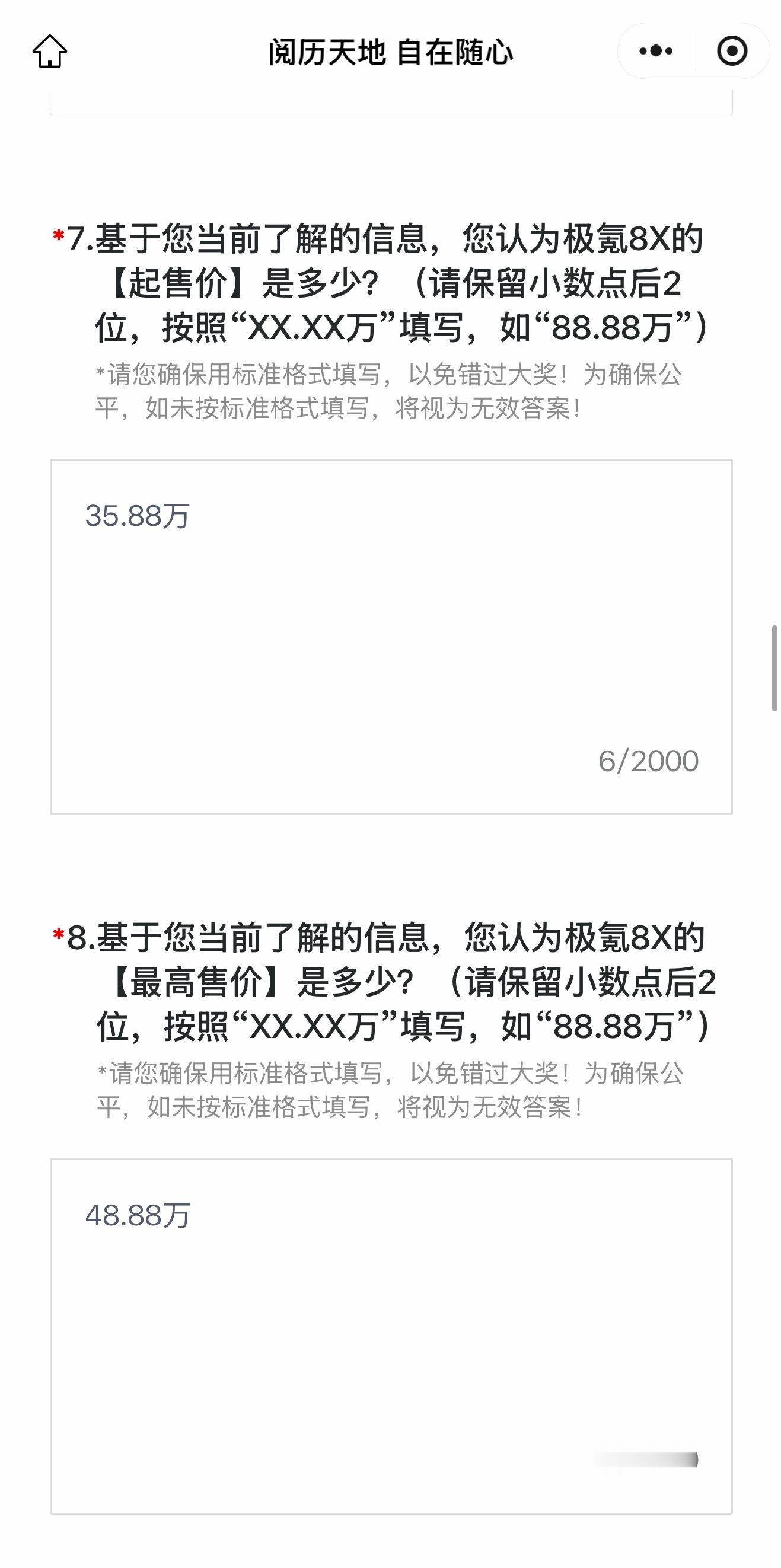 极氪 极氪公众号的活动,大家可以填表猜猜「起售价」和「最高售价」,还能赢极分,最高800万,相当于极氪拿出来80万预算征集大家的意见,极氪9x大卖一部也确实有💰