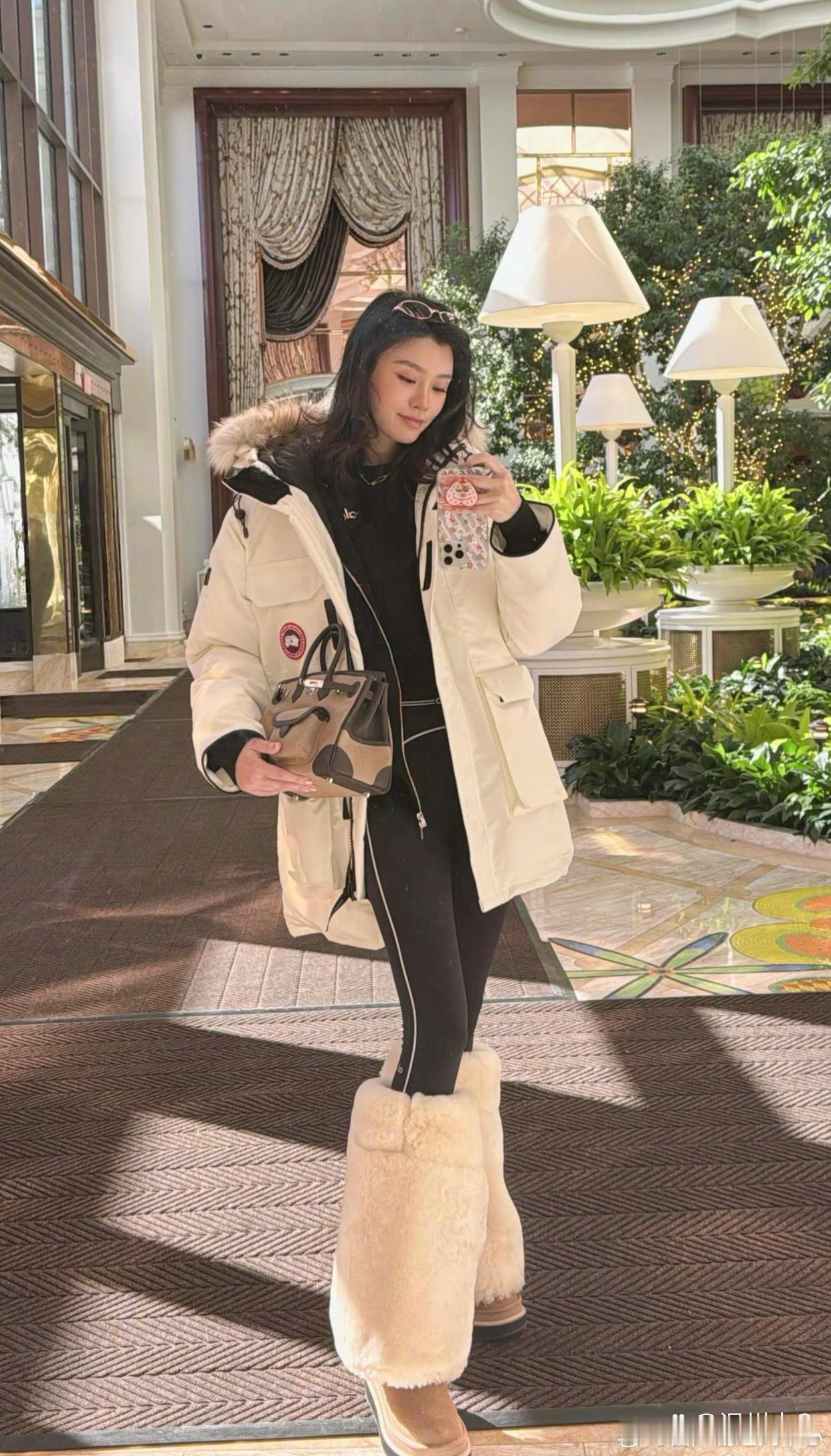 奚梦瑶是真的很爱穿夸张的大毛靴,一般人真的很难驾驭这种鞋子。不过谁叫她是超模呢,