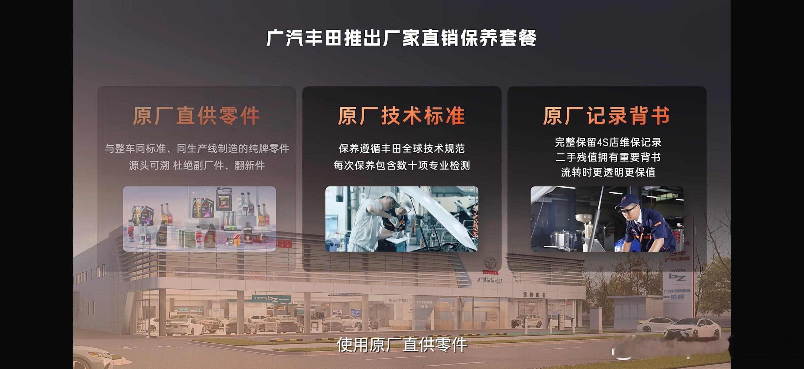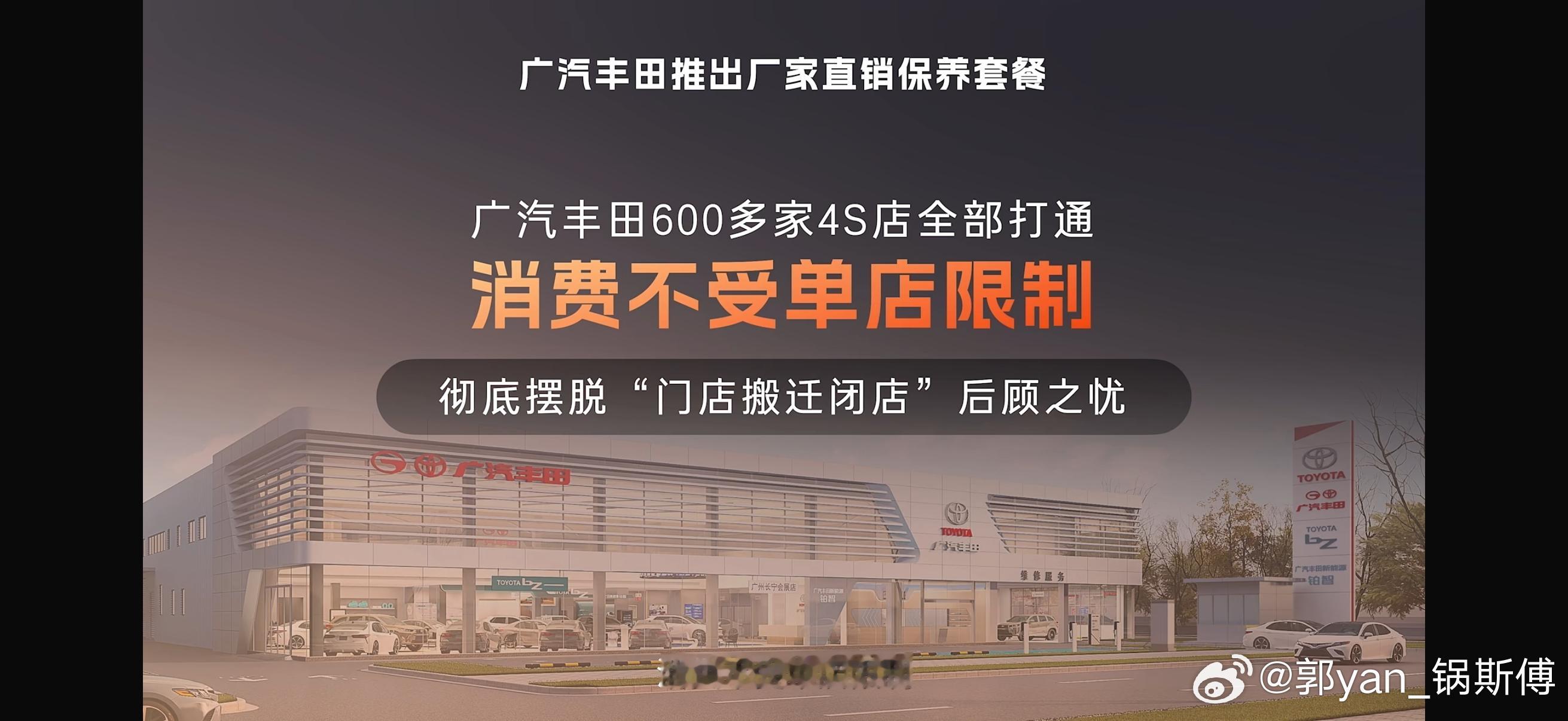 5、厂家直销保养套餐,2099元/4次全国通用,有什么不一样?传统4S店保养最大的槽点是价格不透明、门店绑定、怕店搬了套餐作废。广丰采用厂家兜底,2099元4次原厂保养,市场价七五折,全国600多家店通用,零件工时费全包,按保养所需自由选择单次购买。这意味着用户不用一次性被绑死,而是把"卖车后赚保养钱"变成"保养透明化换长期信任"。