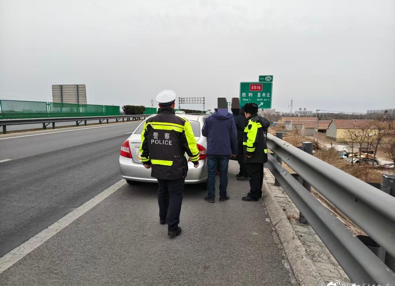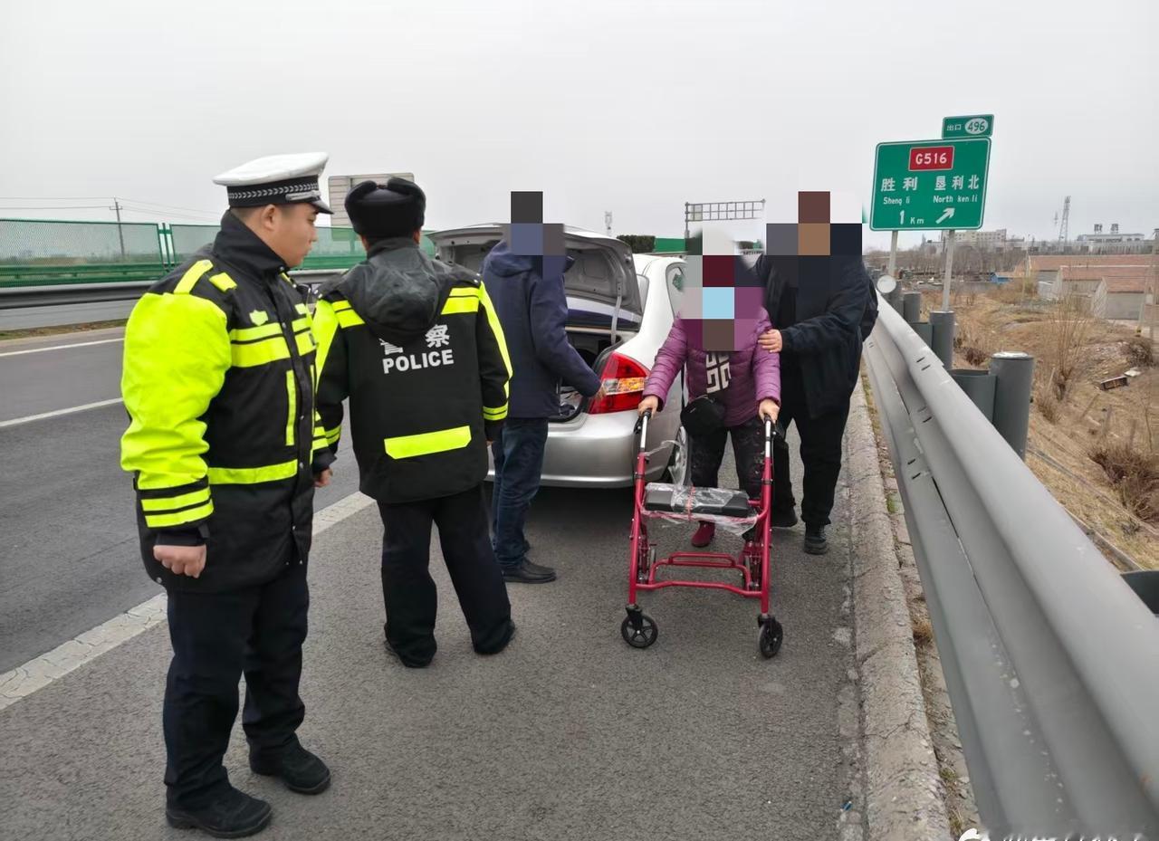 交警同行 2月23日12时左右,东营交警东吕高速大队巡逻至疏港K498路段时,发现一小车突发故障停在应急车道,车上载有生病老人。执勤民辅警了解情况后,立即用警车将老人及其家属安全护送至高速下道口,并帮助家属打车到医院就诊。