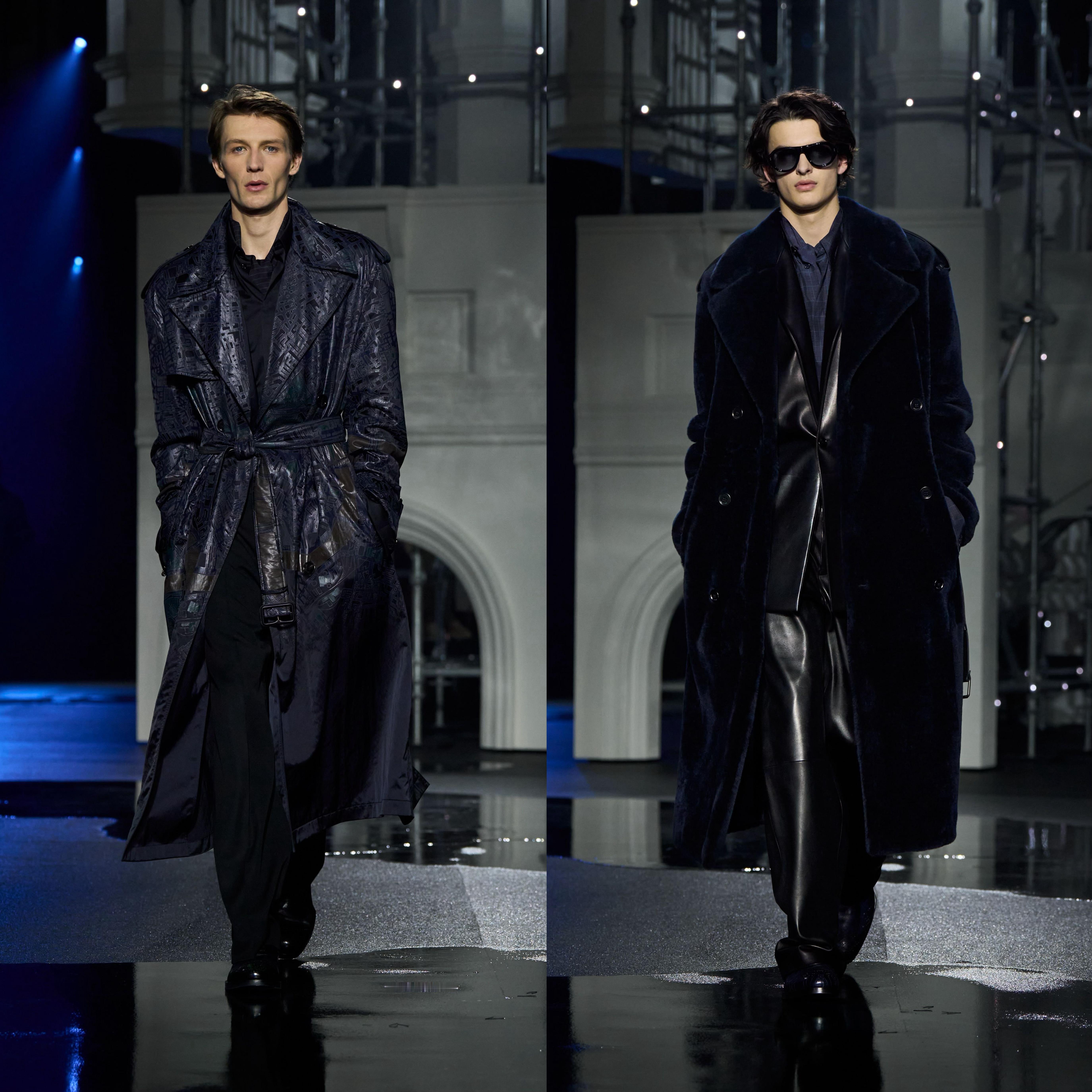 如果说 2025 冬季与 2026 夏季系列描绘的是远离城间 、奔赴乡野与户外音乐现场的旅程 ,那么 2026 冬季则将视线放在了都市街头。标志性的风衣造型贯穿系列始终 ,格纹 、褶皱 、荷叶边等元素的运用 ,网料 、皮革 、罗缎在内一众面料的融合 ,对于英伦文化与风格的深入讨论 ,我想没有比 Burberry 和风衣更适合的代表了 ,而这便是 Daniel Lee 的本季核心。深色系 、暗调的色彩使用呼应冬夜概念 ,外套 、晚宴西装和丝质衬衫将男装呈现出了更加年轻化的穿着方式 ,皮革飞行夹克 、连帽衫与风衣则焕发出优雅气息 ,实用 、皆宜 ,明了有力 ,亦是本季创作关键词。