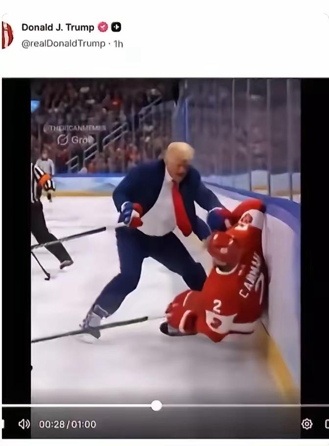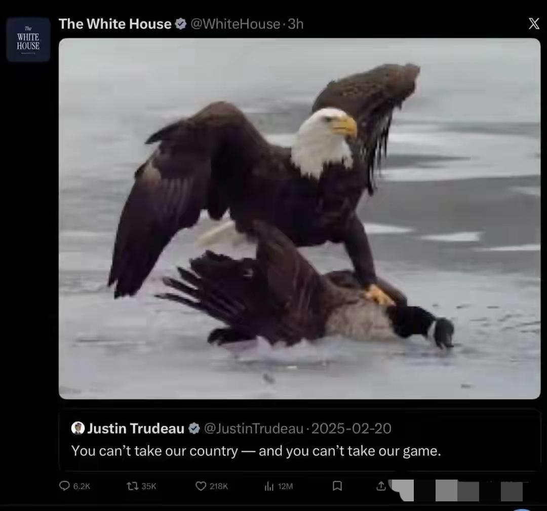 美国赢后彻底变味!实在没水平!米兰冬奥会冰球决赛,美国赢了加拿大,这本是一场精彩的竞技对决,结果硬生生被美国玩成了国家级政治骂战,借AI拼图找优越感,靠国家账号搞人身攻击,大搞特搞猛搞狂搞,疯狂羞辱对手,白宫,政客,媒体齐上阵,搞出了白头鹰狠踩加拿大鹅,给加拿大鹅挂银牌,配文极尽嘲讽,卢比奥和特朗普还都亲自下场参与恶搞,看看这格局,这肚量,这水平,真不是故意要说他,但不得不说,美国赢了一块金牌,却丢掉了整个国家的风度。 反观加拿大,输了球,没撒泼没闹事,心态平和,稳重大气,再看美国,赢了球,却像个既输不起也赢不起的玻璃心巨婴,一不小心就把既要又要还要的老毛病展现的淋漓尽致,仿佛在说:全是我的!全是我的!都是我的!什么都是我的!我是最棒的!你们谁都不如我!美国优先真好呀!美国优先万岁!万岁!万万岁![黑线]