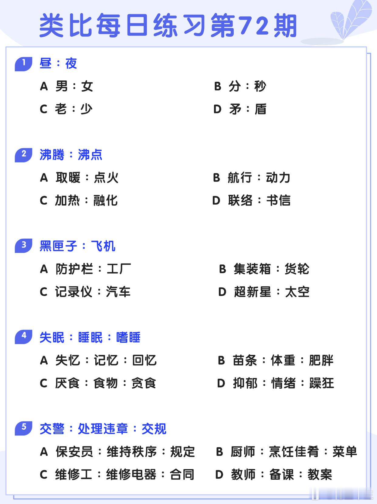 图推类比每日练习第72期图推难度:☆☆类比难度:☆☆开学元气加油站决战公考省考26省考