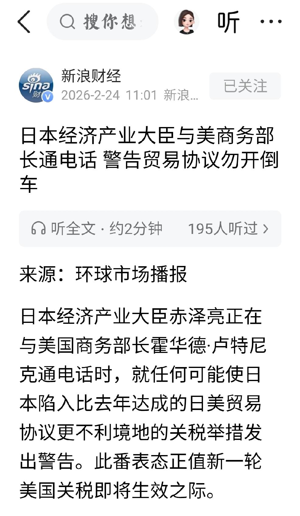 2月24日,中国商务部发布2026年第11号公告,将20家日本实体列入出口管制管控名单。 2月24日,新浪财经发文:“日本经济产业大臣与美国商务部长通电话,警告贸易协议勿开倒车” 2月23日,环球网,央视新闻发文,商务部发言人就美国最高法院公布关税裁决结果,表示中方敦促美方取消对贸易伙伴加征的有关单边关税措施。 个人认为:在当下的中美日最新形势下,日本高市早苗的最新贸易决定,能否满足美国总统特朗普的要求? 假如当下日本的决定没有满足美国特朗普的要求,反而还激怒了美国特朗普,使得特朗普迁怒于世界各国,从而使得中国不接受特朗普访华,使得美国总统特朗普对日本做出激烈的反应? 其实个人认为:日本恰恰是史无前例的全球唯一的最符合,美国解决自身危机的唯一方案。 使用日本,解决美国危机是十全十美的最具可行性的方案。