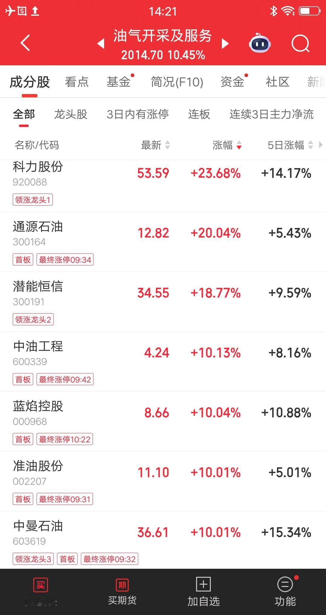 大A今天最牛的板块诞生了,干涨停了,真是活久见呀。 竞价高开3.94%,开盘后急速拉升,资金疯狂涌入。股价全天都在高位运行,涨幅超过10%,简直屌爆了。 个股掀起涨停潮,科力股份 +23.68%,通源石油 +20.04%,潜能恒信 +18.77%,中油工程 +10.13%,蓝焰控股 +10.04%,准油股份 +10.01%,中曼石油 +10.01%,惠博普 +10.00%,中海油服 +10.00%,贝肯能源 +9.98%,博迈科 +9.98%,洲际油气 +9.92%,石化油服 +9.90%。 消息面上,美伊核谈判进入关键窗口,特朗普考虑对伊朗进行有限打击。地缘冲突风险,推升油价上涨,板块自然受益。 A股就是这样现实,有利好催化,资金就会去干,虽然不一定能炒起来,但是一旦炒起来,主力就能吃的盆满钵满。 反观那些没有利好的票,每天都是织布机走势,把人磨的一点脾气都没有。 真羡慕吃大肉的股友呀!