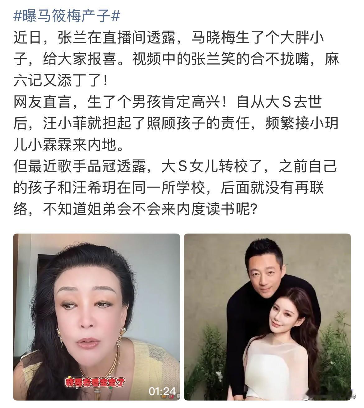 2月24日,张兰直播报喜讯,家里添丁了! 汪小菲马筱梅三胎小马宝出生,有了孩子,这对半路夫妻的婚姻稳了一半,有了男宝,这对半路夫妻的婚姻稳了大半,接下来两人就是安安稳稳过日子,养三个孩子了! 去年许多人不看好汪小菲马筱梅,质疑他们只是组局演戏,今年看他们有了孩子才确定两人是真的有认真过日子!三宝的到来,对于大宝二宝来说,是惊喜也是意外!期待三宝成为这个新家的粘合剂,让家更像家!