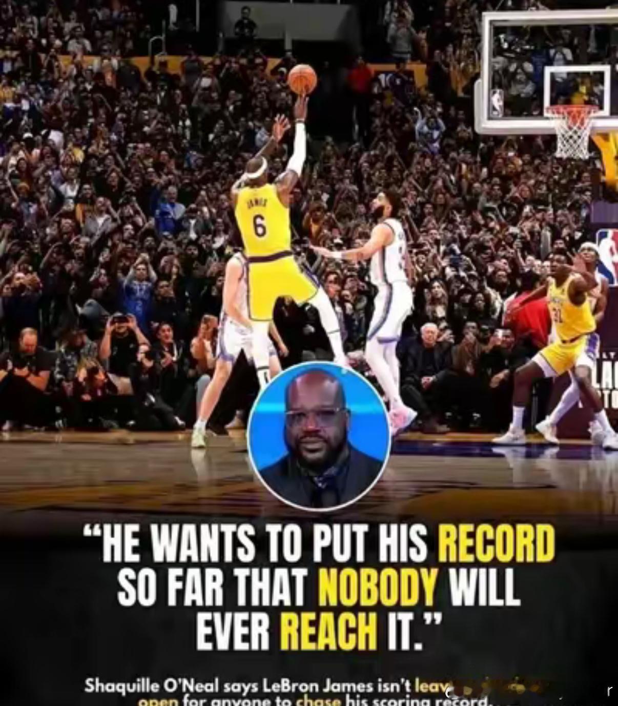 奥尼尔公开直言,詹姆斯如今迟迟不选择退役,根本并非为了冲击总冠军,而是一心要将NBA历史总得分纪录,拉开到后人永远无法企及的位置。