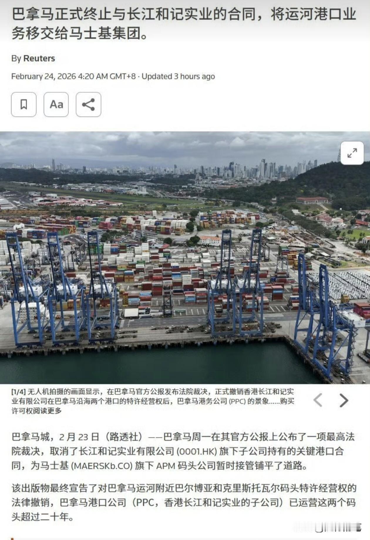 巴拿马再进一步,强行接管李嘉诚公司在巴拿马运河的港口,李嘉诚公司发文作出下一步计划,港府也严厉谴责和抗议。 李嘉诚公司港口事件持续发酵,巴拿马政府继裁定毁约之后,现在彻底不装了,居然强制接管了李嘉诚公司在巴拿马运河的港口。这种粗暴的做法,一是突显巴拿马政府是铁了心要翻脸,不顾中方的态度,第二反映出巴拿马政府似乎有恃无恐,利用地理之便,认为中方奈何不了它。第三也体现美国给的压力也是相当大,使得巴拿马政府加紧处理。 巴拿马政府作出举动之后,李嘉诚旗下公司紧急发表声明,并且表示将研究可行途径,采取下一步法律行动,维护自身正当合法权益。另外,港府也相继发文谴责,作出严正抗议。李嘉诚旗下公司和港府的反应都很快,当然,目前也只有先表明态度,接下来的下一步动作该如何,将是中国政府的考量。 李嘉诚港口这件事说白了就是中美的博弈,中方不可能允许在外部势力的压力之下,中国的企业完全不抵抗就做出让步或者放弃,而中国政府也不可能允许中国企业任由其他国家无端欺压。表面上看是与巴拿马政府的事情,但实质上是与美国的地缘博弈。国际博弈从来都不容易,也不是简单的一得一失,不是短时间就能看出结果,最终决定李嘉诚港口这件事的结果,关键还是看中美之间的筹码。