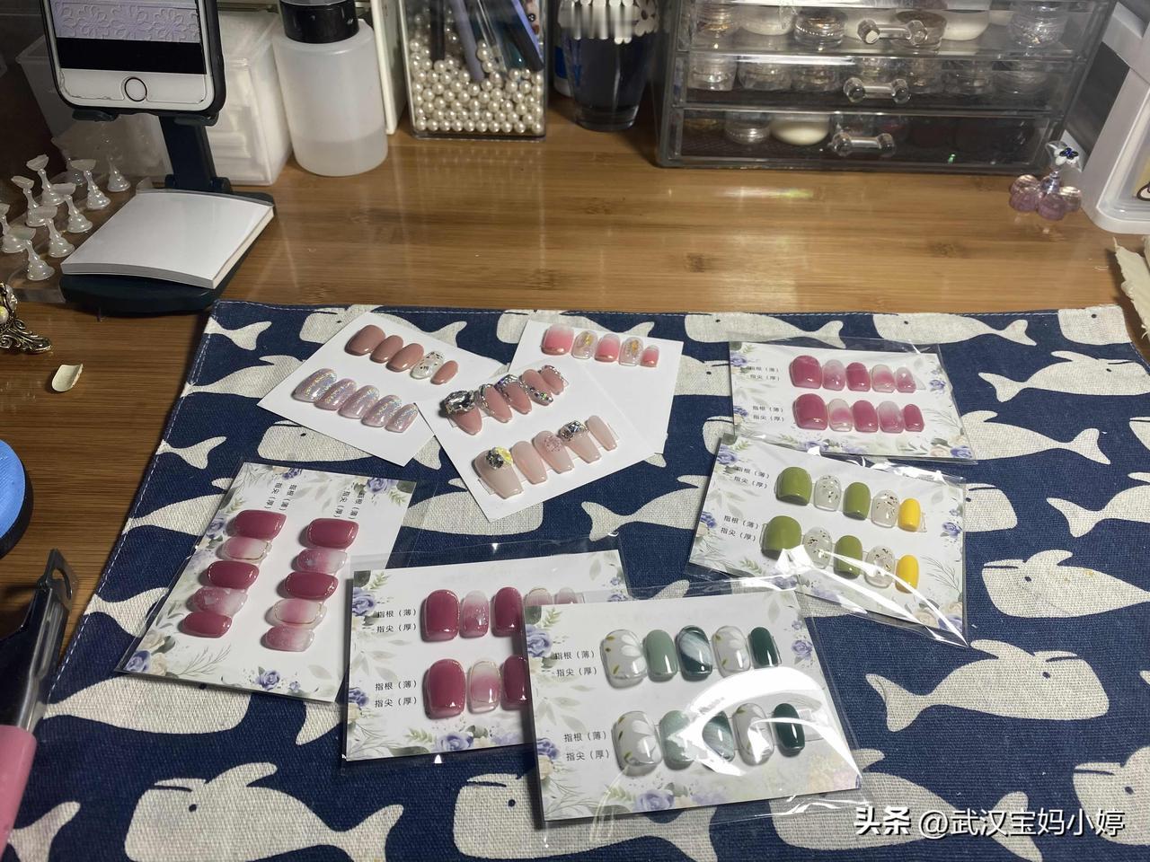 好多人说我学了美甲美睫,却没有干这行,浪费了手艺! 当初刚学完的时候,妹妹们就准备一起出资给我在小区开个美甲店,还可以带着孩子!大家也知道有段时间我一直在家里接单做穿戴甲,这样还有点收入,但是也不多,都是粉丝们给面子!我挺知足的,又可以照顾孩子!后面疫情来了,在后面美甲行业开始内卷,一般美甲店根本赚不到什么钱!开美甲店投入又大,房租什么的,后面开店就不了了之了! 后面有想过去美甲店上班,和学美甲的朋友一起去找了几家店,基本两种工资方案,一种就是拿底薪➕提成,但是这个提成比较低,一种就是和美甲店五五分!这个就是做多少拿多少了!我们这个小县城,别看小,美甲店遍地开花,做个本甲29的39,贵点的可能99,再贵的就非常少了!朋友去做了一个星期,拿了三百块钱就走了,就一个坚持了下来,她是没什么压力,顺便多积累经验!像我如果要养家的,是完全不行的! 后面没办法就去找了童装店卖衣服的工作!现在也没有说把手艺丢了,这不过年给妈妈,小姑还有自己做了一个美甲过年!又省了不少钱[星星眼]