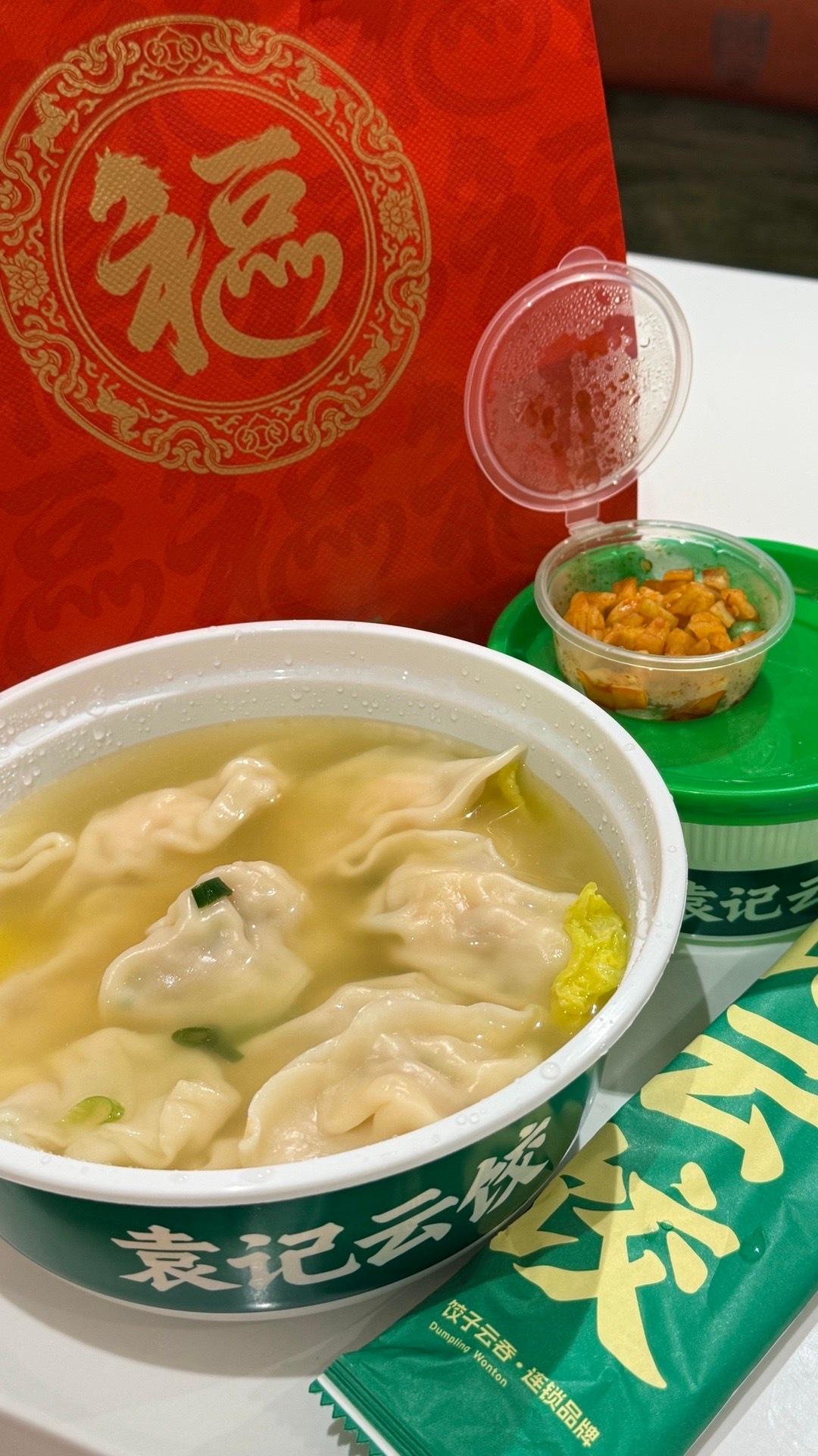 拐进楼下的袁记云饺,要了个鲜肉云吞。看着阿姨现包,皮薄得透光,肉馅粉粉嫩嫩的,丢进滚水里一煮,白白胖胖浮起来。 端上来先喝口汤,紫菜虾皮打底,鲜得眉毛跳。一口咬下去,肉汁biu出来,满嘴都是家常的踏实感。 有时候幸福感就这么简单——不用大鱼大肉,一碗热乎乎的现包云吞,刚刚好。 你们多久没吃这种现包的了?