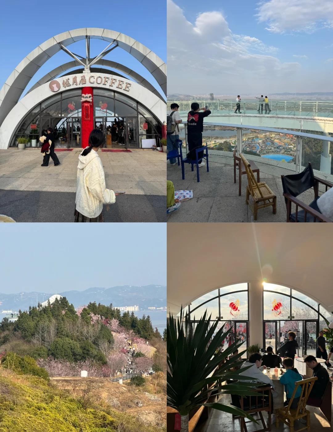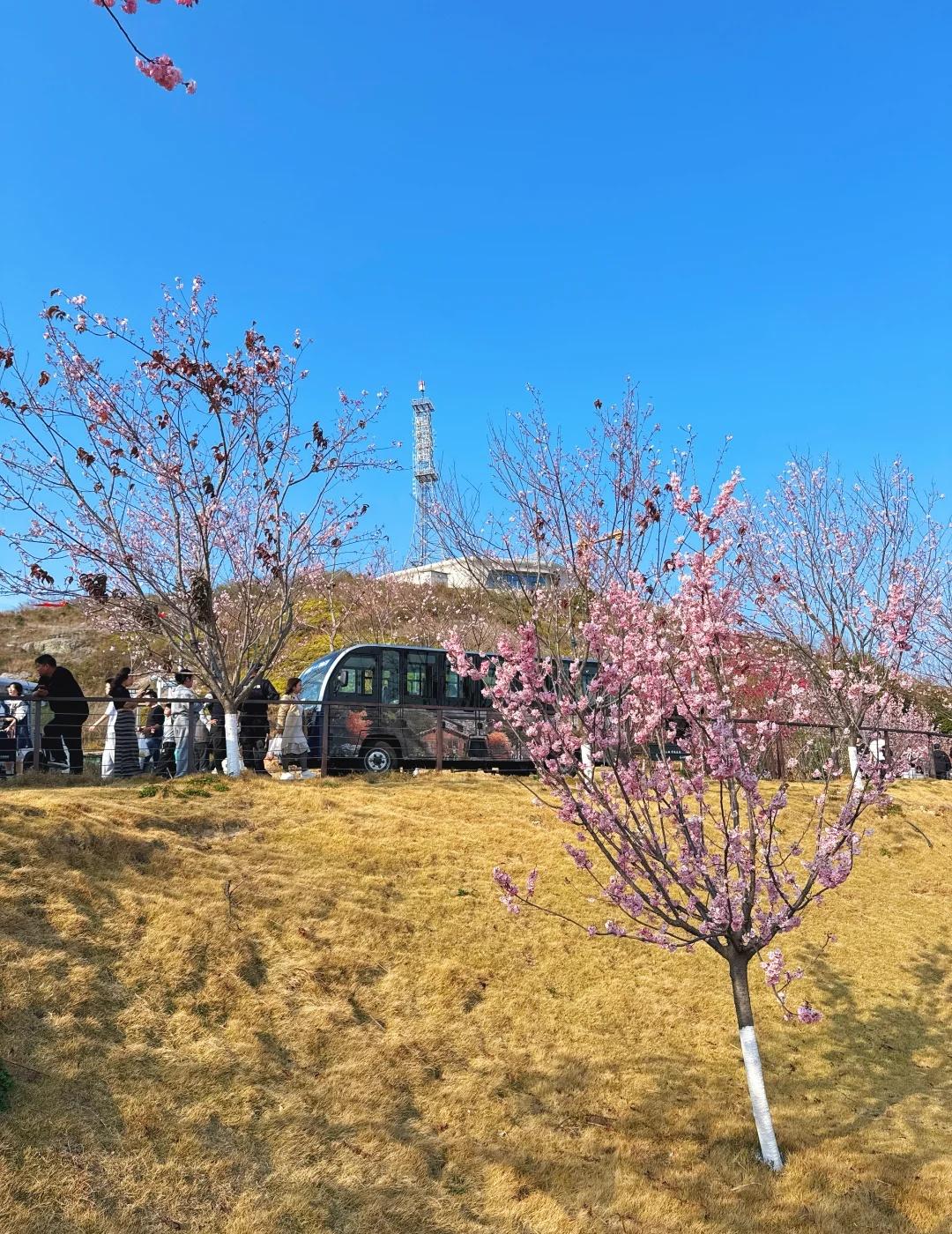 春暖花开 盐盆山顶的樱花开了🌸 阳光温暖,盐盆山顶朵朵樱花已经盛放。 好天气来登个高望个远! 上盐盆山的路线有多条 ①进入清和公园 到盐盆山诗词栈道 爬山1小时左右 ②导航到渔人码头 高架桥左边的小道 据说半小时左右 ③我们这次坐观光车上山 (具体看最后一图) 山顶的风景确实不错 圆形玻璃栈道人很多需排队 拢月居咖啡也是人满为患 观光车附近没有停车场 停在路边 交换春天 春天就要上春山 周末去哪儿 温州游玩推荐 乐清 相约樱花烂漫时 带你看樱花 樱花盛开的季节