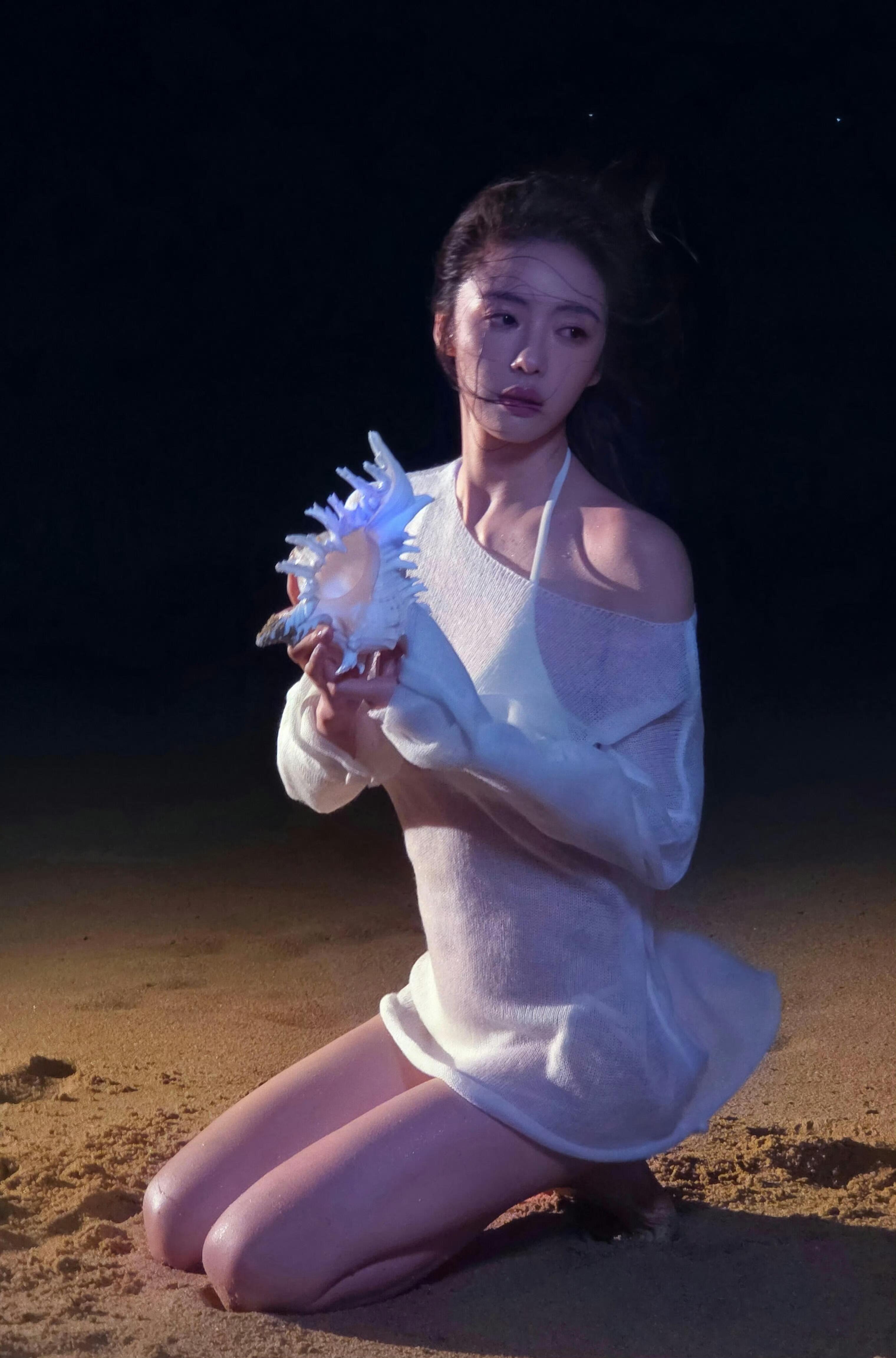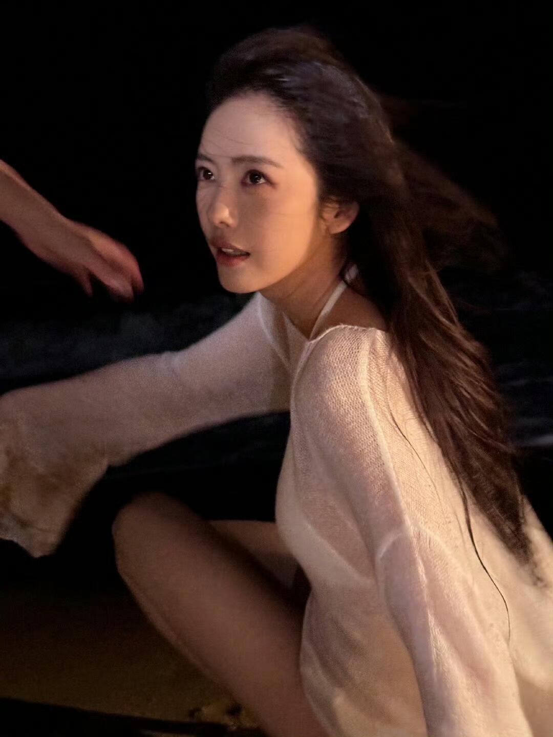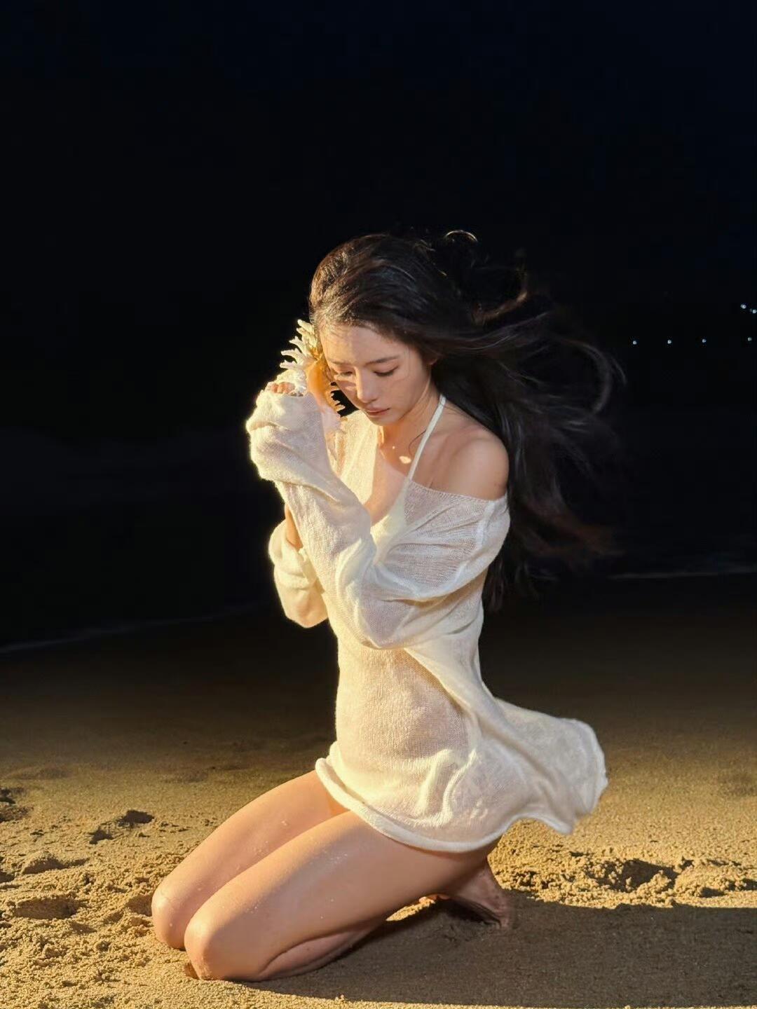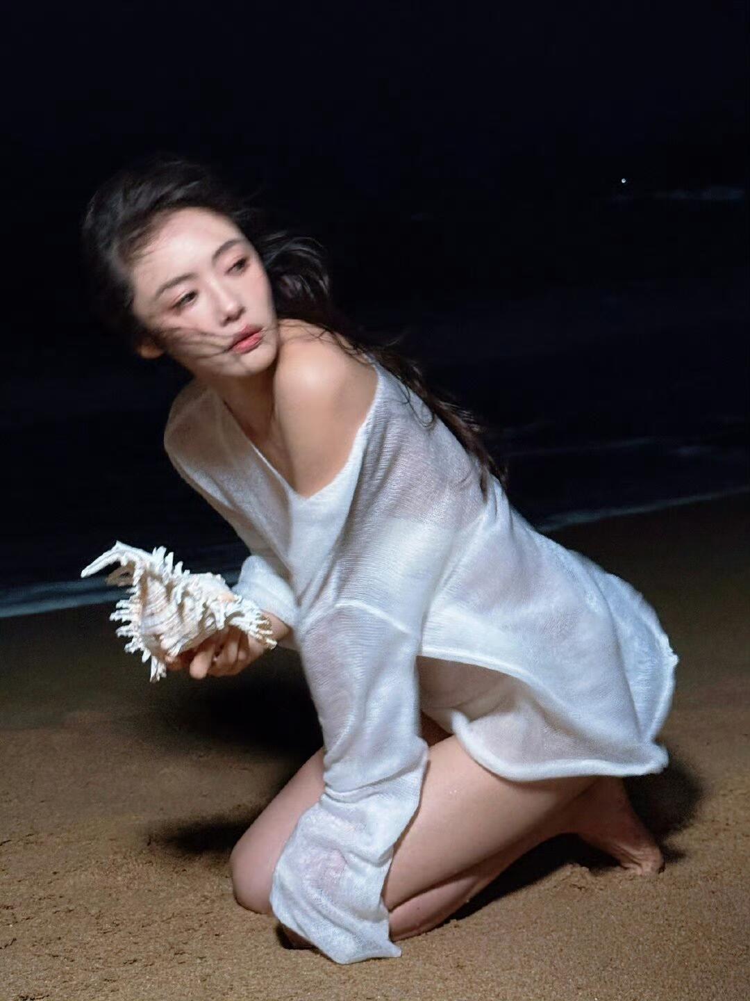 蔡文静趴在沙滩上美图太绝了