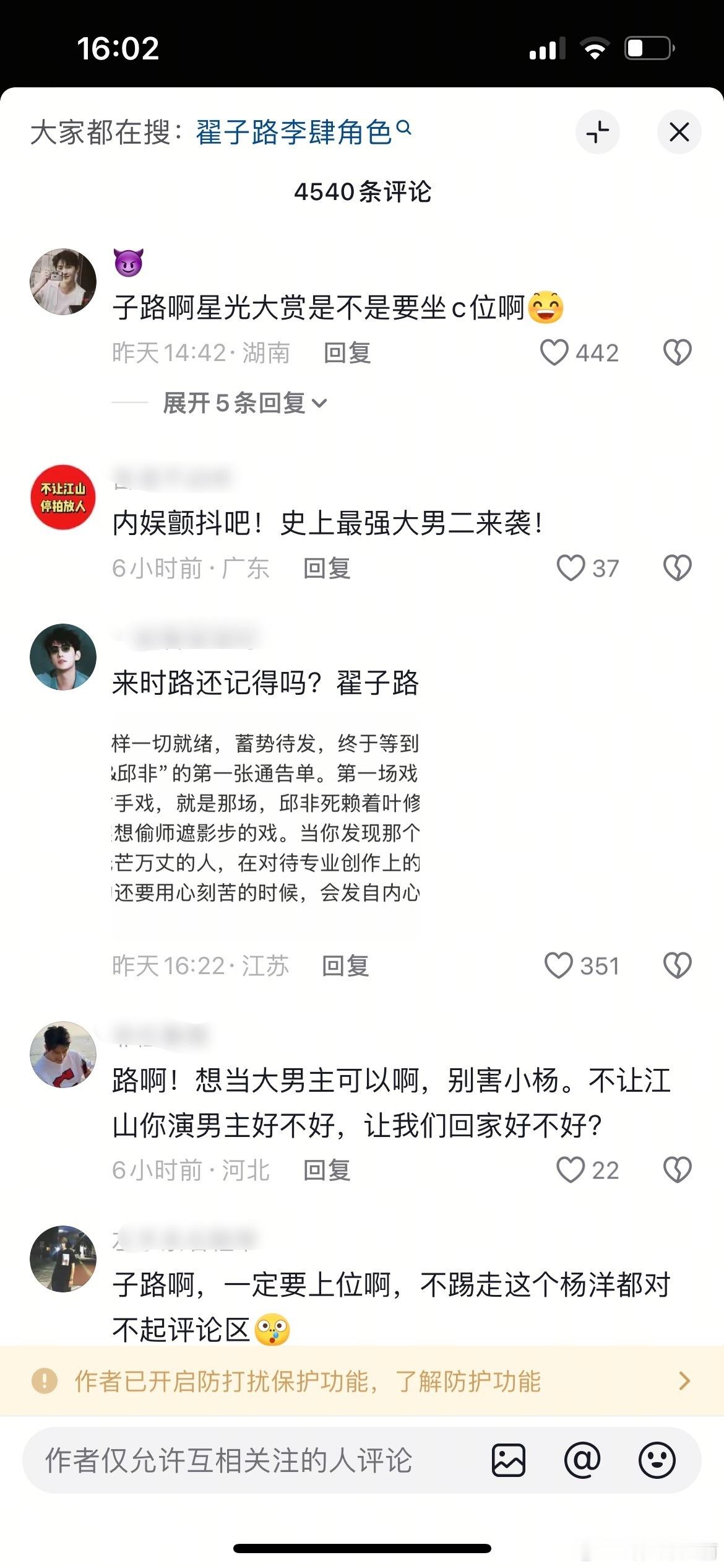 翟子路评论区沦陷了,因为不让江山那事