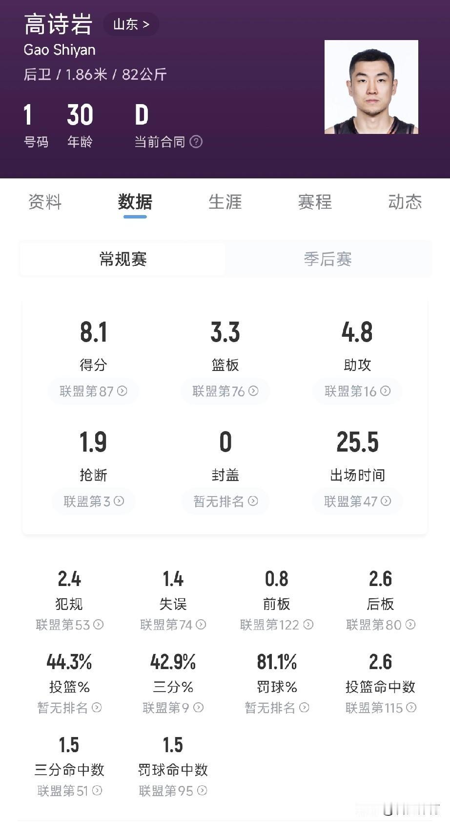 请不要再说高诗岩是“高铁”了,因为郭士强带的这6大后卫中,高诗岩在CBA外线三分球命中率是最高的? 1. 高诗岩(山东高速):42.9% 2. 贺希宁(深圳马可波罗):38.9% 3. 胡明轩(广东宏远):30.8% 4. 赵睿(北京北汽):30.2% 5. 赵继伟(辽宁本钢):28.6% 6. 廖三宁(北京控股):24.5% 这6人中,只有高诗岩的三分球命中率超过了4成,贺希宁、胡明轩、赵睿都仅有3成,赵继伟、廖三宁更是低至2成! 高诗岩这样的表现,郭士强的中国男篮世预赛12人大名单带他有毛病吗? 郭士强应该让高诗岩继续打首发,一个三分球命中率精准,防守能力出色的球员,一定能带领中国男篮挺进世界杯,拿下奥运会资格! 现在已年满30岁的高诗岩,不仅是郭士强手下的爱将,更是中国篮球历史上不可多得的瑰宝,一定要多加培养,争取在奥运会的舞台上也能够大放异彩,帮助中国男篮冲击奖牌!