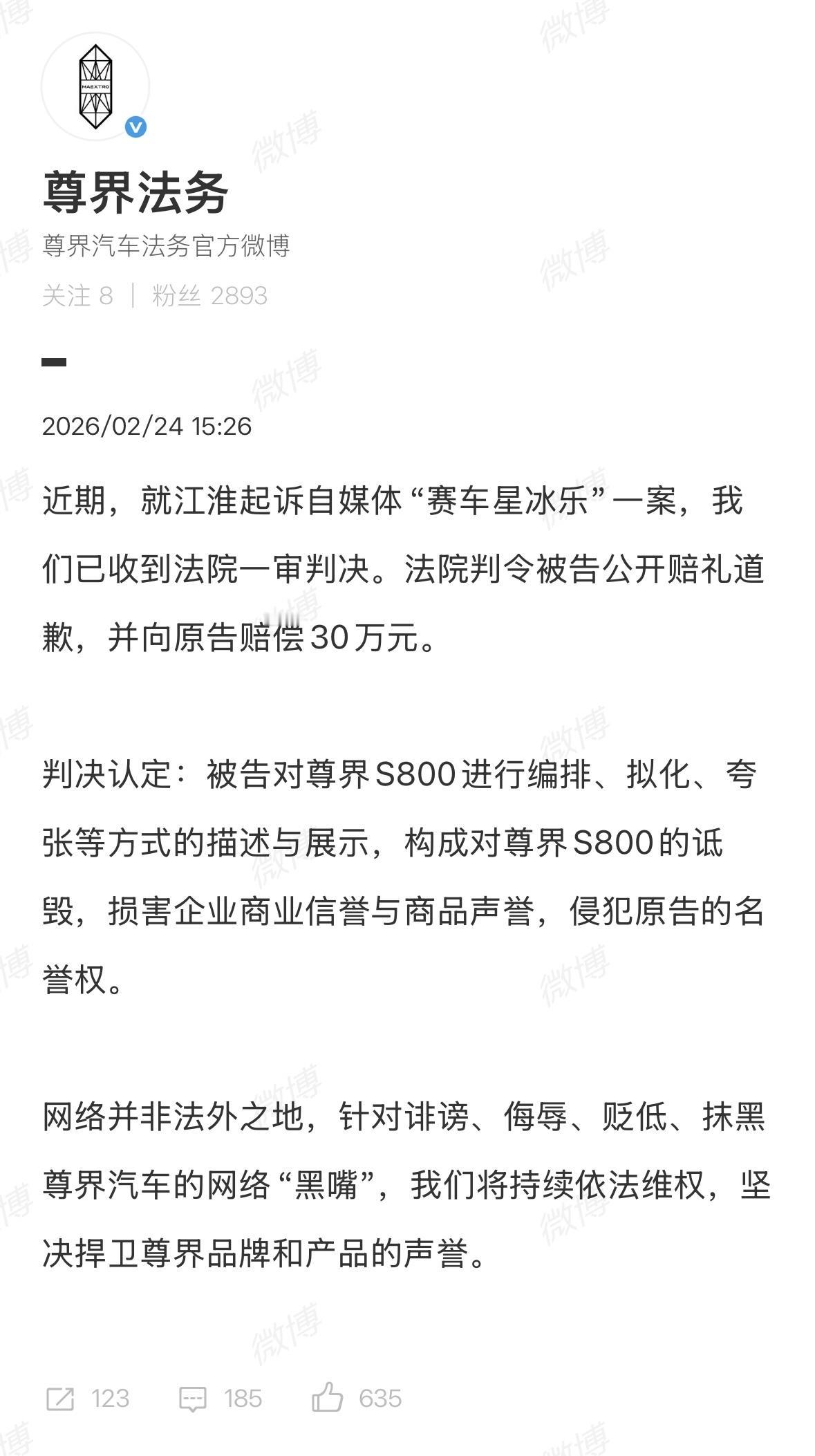 赛车星冰乐被判向尊界汽车赔偿30万元 AutoReport汽车产经被判向小米公