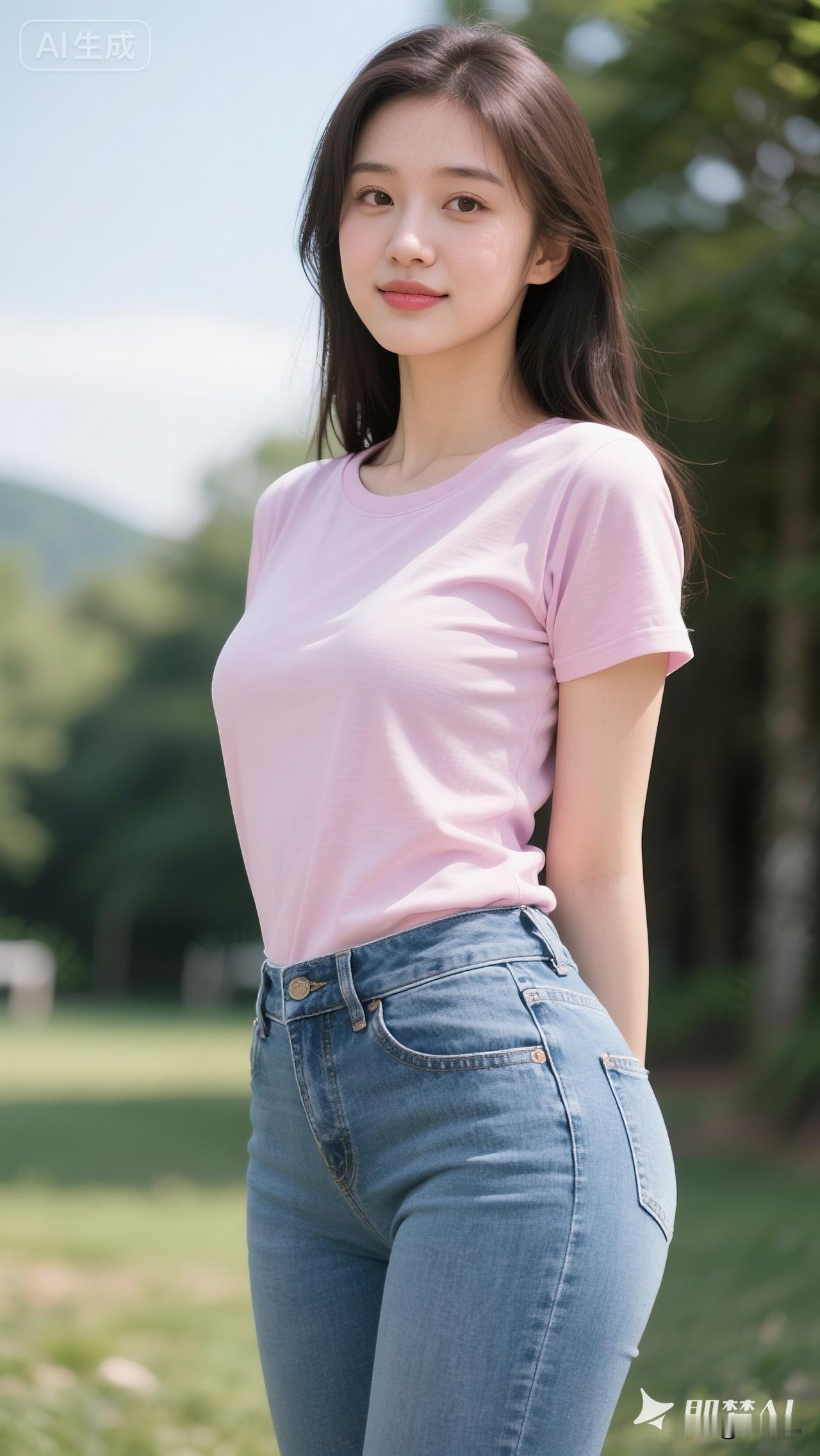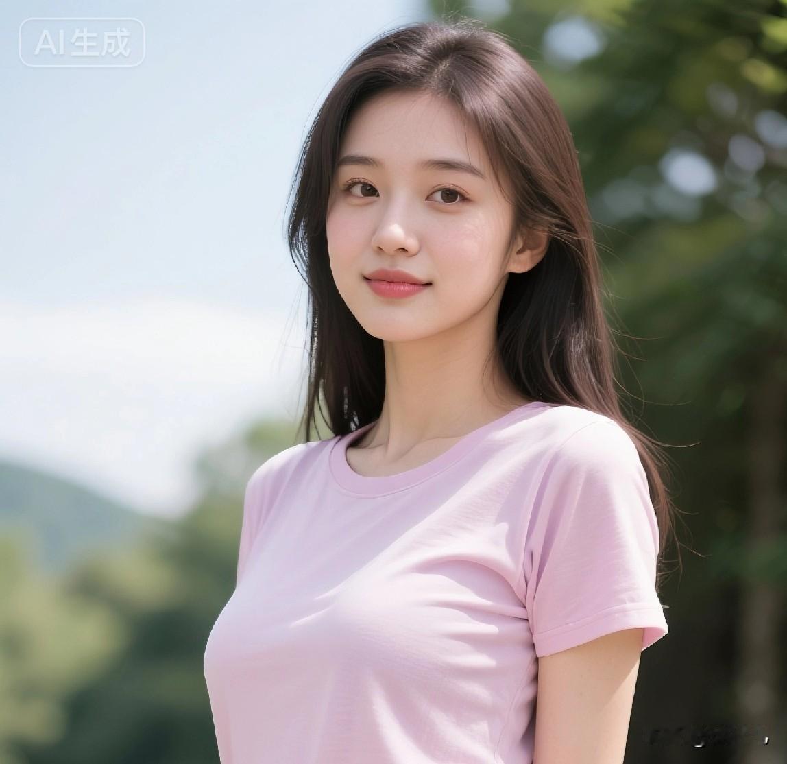 阳光明媚,少女甜美微笑,粉色T恤,清新自然~粉色T恤穿搭清新自然风甜美微笑